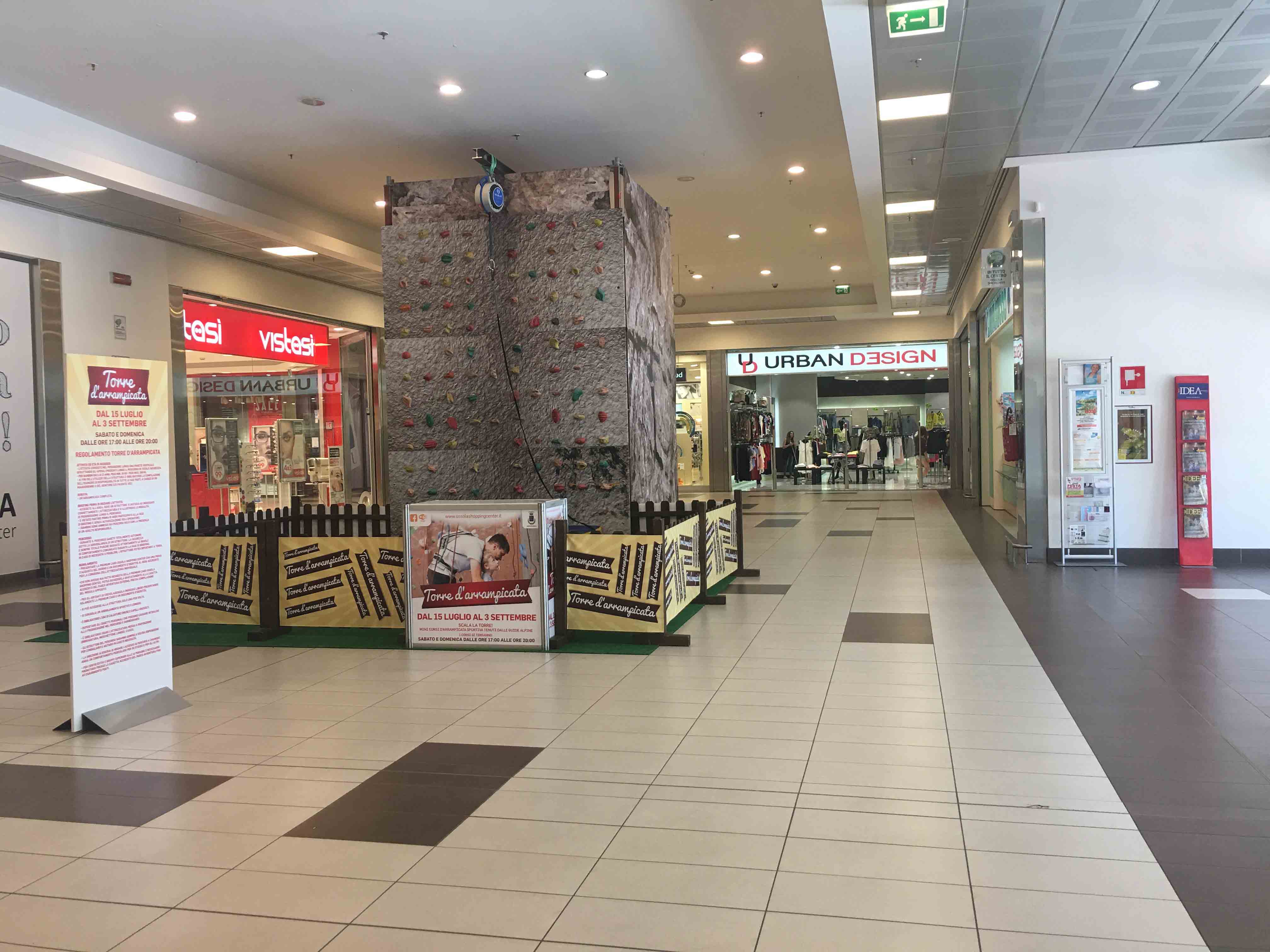 CREVOLADOSSOLA12-07-2017-Si sta lavorando alacremente all'Ossola Shopping Center di Crevoladossola per l'allestimento di un Parco Avventura per ragazzi ed adulti nella parte esterna del centro commerciale. Il parco sarà aperto fino al 3 settembre dal lunedì al venerdì dalle 16 alle 19, e sabato e domenica dalle 15 alle 19. Per l'accesso gratuito ai residenti di Crevoladossola è richiesta la carta d'identità, mentre per i non residenti basta presentare la Premium Card Ossola Shopping Center con una prova d'acquisto del giorno ed il documento d'identità per la consegna dell'attrezzatura. È obbligatorio usare l'attrezzatura messa disposizione (imbragatura, moschettone, casco); gli istruttori del percorso saranno sempre a disposizione per consigliare o aiutare in caso di necessità. Per i centri estivi o per i gruppi superiori alle 10 persone è necessario prenotarsi presso la casetta di accredito del parco avventura fino ad esaurimento posti. Inoltre all'interno del centro commerciale è stata allestita una parete di arrampicata per i più piccoli, disponibile con le stesse modalità tutti i sabato e domenica dalle 17:00 alle 20:00, il tutto comprensivo di un briefing prima di iniziare l'attività durante il percorso sotto la sorveglianza di un istruttore in totale sicurezza.