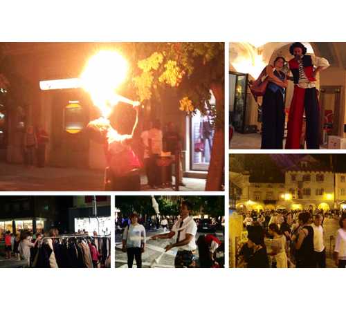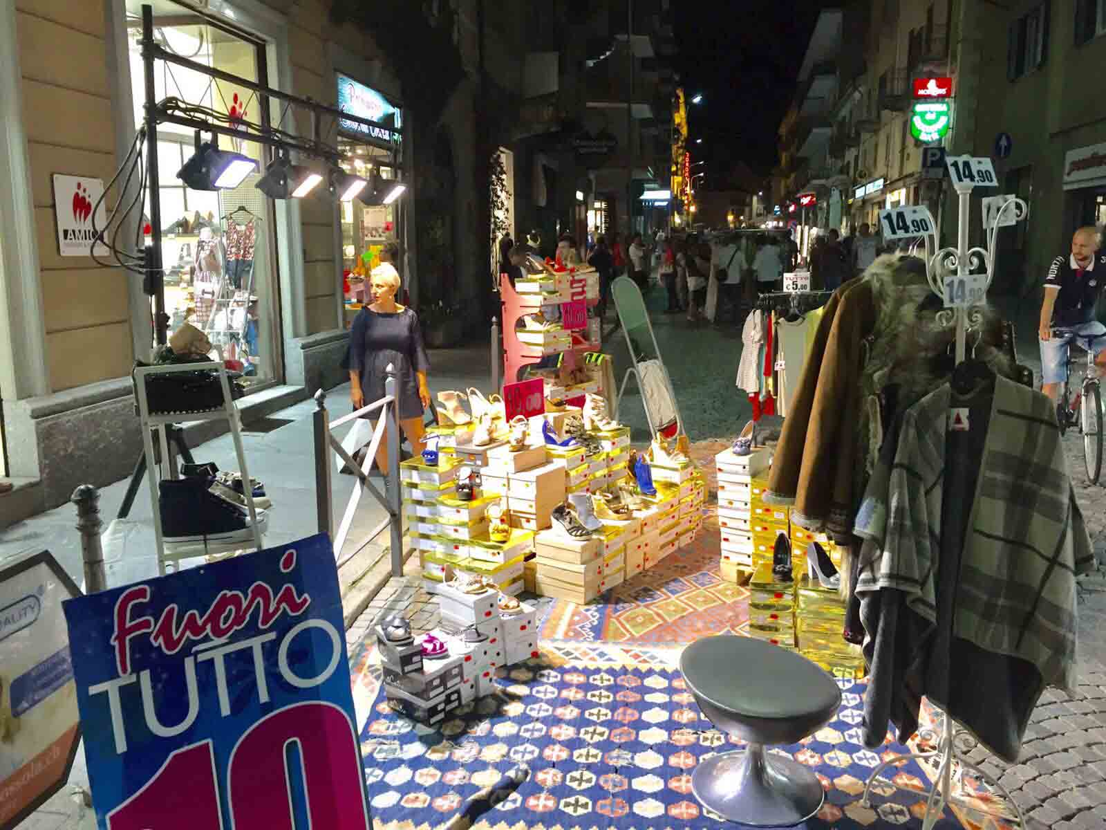 complice anche la calda serata estiva, per il Fuori Tutto 2017. Alcuni negozi, come da tradizione, hanno esposto le loro merci in saldo speciale sin sul marciapiede, gli altri sono semplicemente rimasti aperti sino a tarda ora. Per intrattenere i passanti sputafuoco, giocolieri, trampolieri ed il trenino dei bimbi, preso d'assalto.