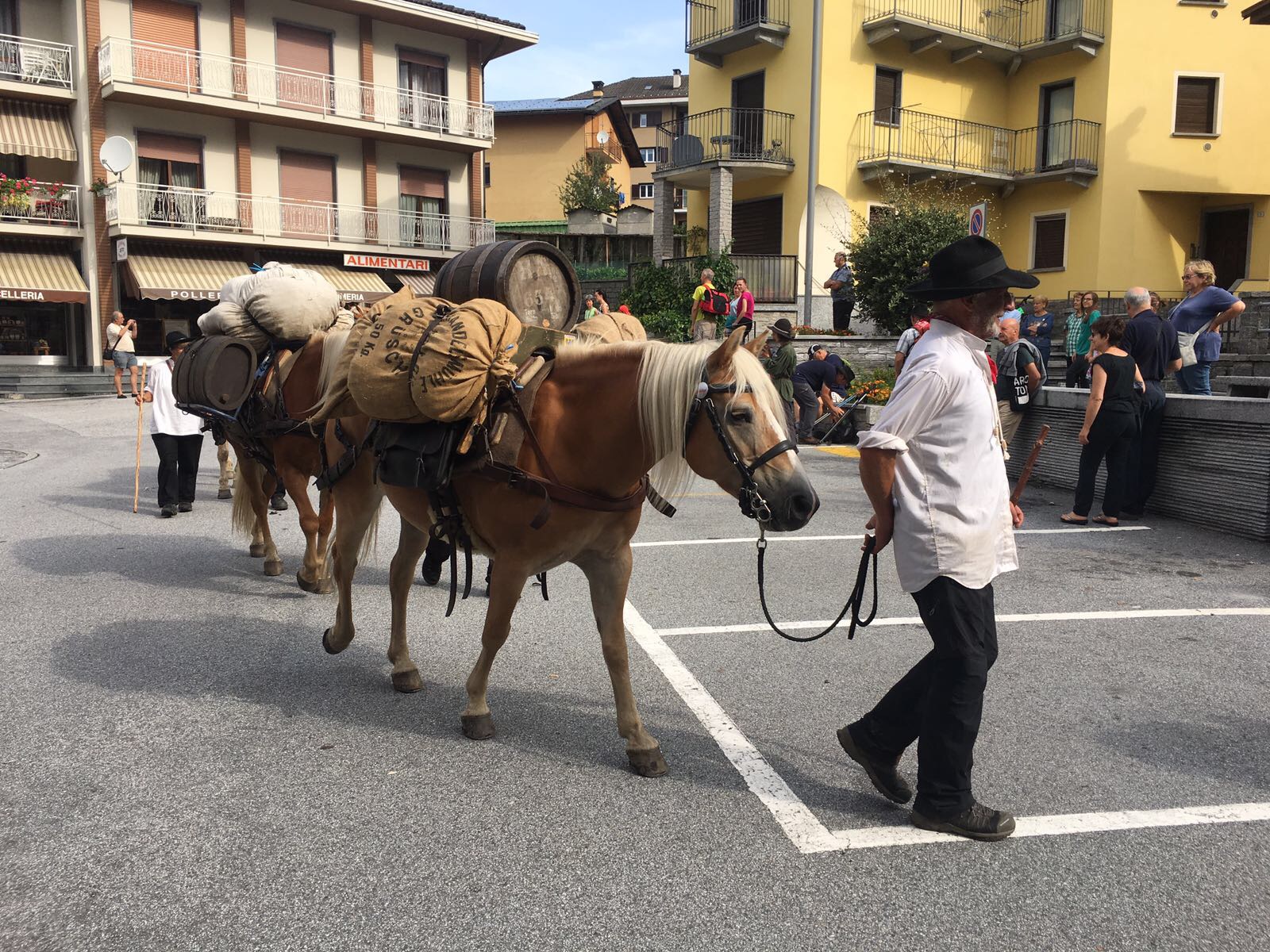 CRODO- 26-07-2017- Accolti da amministrazione e gruppi folk i someggiatori della Sbrintz Route stamane erano a Crodo. In giornata scenderanno verso valel passando da Montecrestese e Crevola sino a piazza Mercato a Domo, intorno alle ore 18. Per l'occasione l’ingresso di via Briona sarà addobbato con bandiere italiane e svizzere. La carovana è partita domenica scorsa da Stansstadt, nel Cantone Nidvaldo.