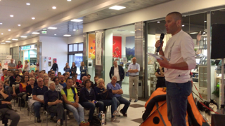 CREVOLADOSSOLA- 02-09-2017- Atteso da moltissimi appassionati di montagna, sabato pomeriggio all'Ossola Shopping Center di Crevola, Marco Confortola, uno dei più forti scalatori del mondo, non ha deluso le aspettative, raccontando, anche con l'ausilio di bellissime immagini, l'impresa dello scorso maggio, quando ha conquistato il suo decimo ottomila, raggiungendo la vetta del Dhaulagiri, in Nepal: “ Qui da voi oggi ho trovato persone molto attive verso la popolazione, i giovani e la montagna- spiega- qui in Ossola ho cari amici, tante guide alpine. Ho trovato una realtà positiva, c'è tantissima gente appassionata, ed è una realtà importante”. Confortola ha notato l'Adventure Park costruito all'esterno dell' Ossola Shopping Center e la mini palestra di roccia al suo interno: “Vedo la felicità di parlare di montagna da queste parte-ha commentato- complimenti alle vostre idee, per il legame che create tra il vostro Centro commerciale, i giovani e la montagna”. Per il futuro il fortissimo scalatore prevede altre vette da raggiungere: “Mi mancano 4 montagne da ottomila metri da scalare- spiega- tre sono in Pakistan ed una in Nepal, per farcela devo continuare ad allenarmi e trovare gli sponsor, e non è assolutamente facile. Ho tanta passione, per la montagna e per i giovani, a cui voglio trasmettere queste bellissime esperienze, l'importanza della vita e dello sport”.
