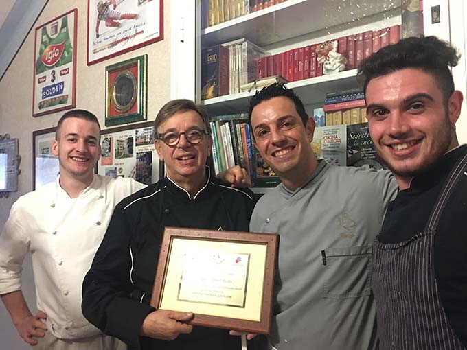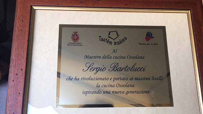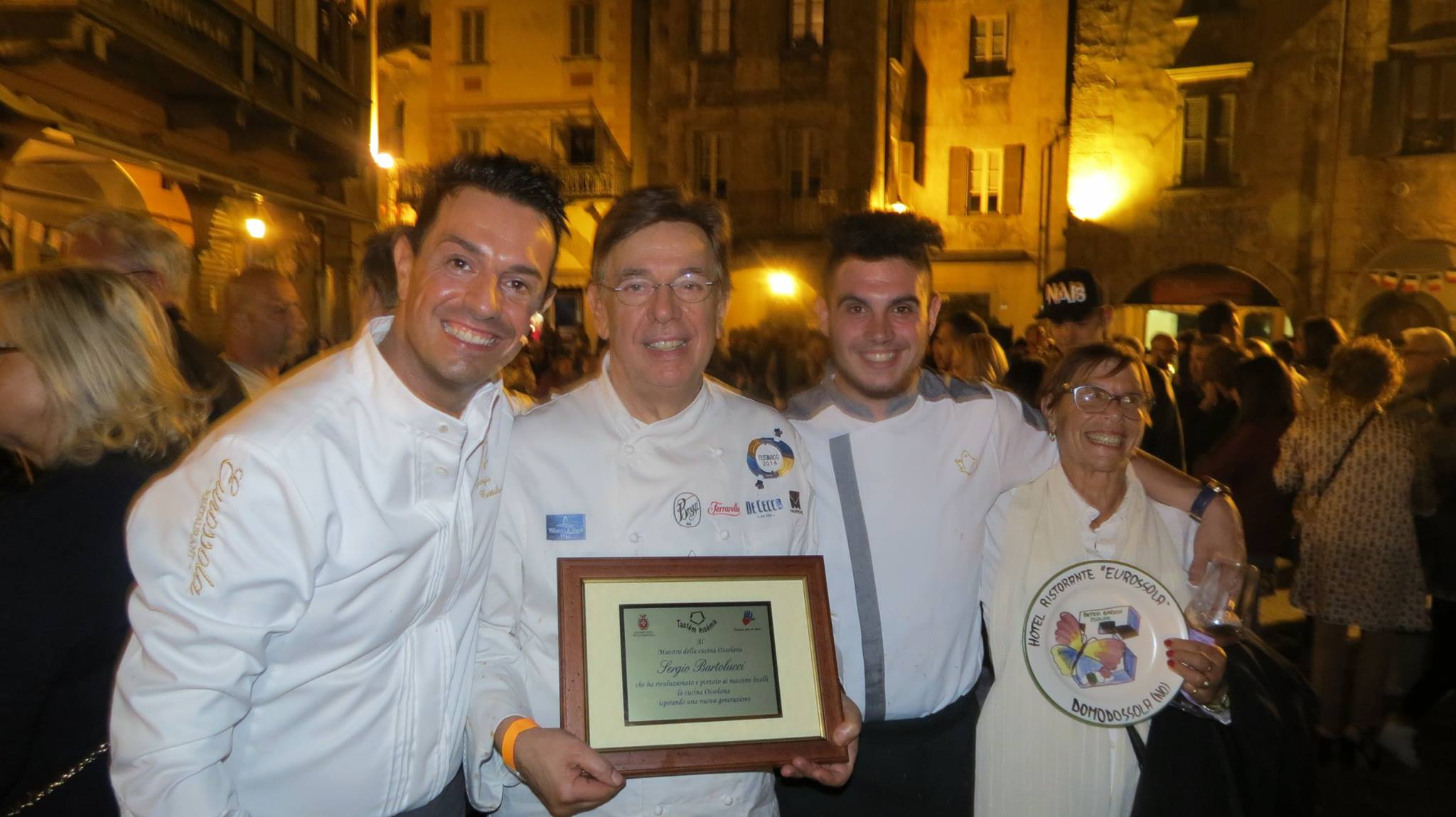 DOMODOSSOLA-07-09-2017- Nell'attesa che la commissione si riunisca per analizzare la richiesta del marchio DeCo (Denominazione Comunale dei prodotti tipici) per gli “Gnocchi all'Ossolana” il suo creatore Sergio Bartolucci, rinomato chef per anni della Trattoria Moncalvese e in seguito del Ristorante Eurossola di Domodossola, che ha lasciato nelle mani del figlio chef emergente Giorgio, ha ricevuto un prestigioso riconoscimento nel corso della serata di “Tastem Insema”, quando è stato premiato con una targa “per aver rivoluzionato e portato ai massimi livelli la cucina ossolana ispirando una nuova generazione”.