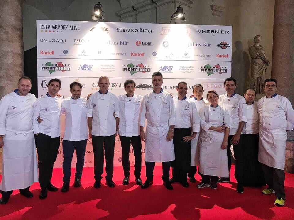 William Vicini, del ristorante la Meridiana di Domo, alla 4^ Celebrity Fight Night in Italy organizzata dai cuochi Euro-Toques sino a lunedì. Star come Bocelli, Elton John e Sharon Stone ed un concerto dentro al Colosseo in diretta tv saranno il contorno ai piatti preparati dagli chef per raccogliere fondi per il Muhammad Ali Parkinson Center e la Andrea Bocelli Foundation. Tra gli invitati alle cene di gala nomi di punta del panorama internazionale, come Antonio Banderas, Steven Tyler (Aerosmith), Sophia Loren, Carlos Slim, La principessa Haya Bint al Hussein, Michael Radford, Bo Derek, John Corbett, Jacklyn Smith, Katie Couric, Luisa Ranieri, Luca Zingaretti e molti altri. Una delle cena cui ha contribuito William Vicini si è tenuta a Palazzo Doria Panphilj, con vari chef dal calibro internazionale.