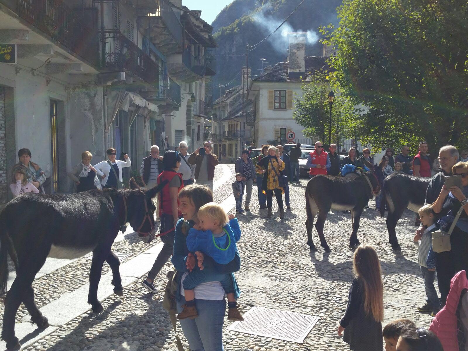 VARZO-08-10-2017-Sono rientrati domenica mattina dagli alpeggi gli Asini che hanno sfilato per la festa "A Scarium" organizzata per loro dalla Pro loco Valle Divedro ed il Comune di Varzo, in collaborazione con gli Allevatori, le Associazioni e le Frazioni, tante le persone che hanno seguito la manifestazione che proseguirà fino a questa sera.