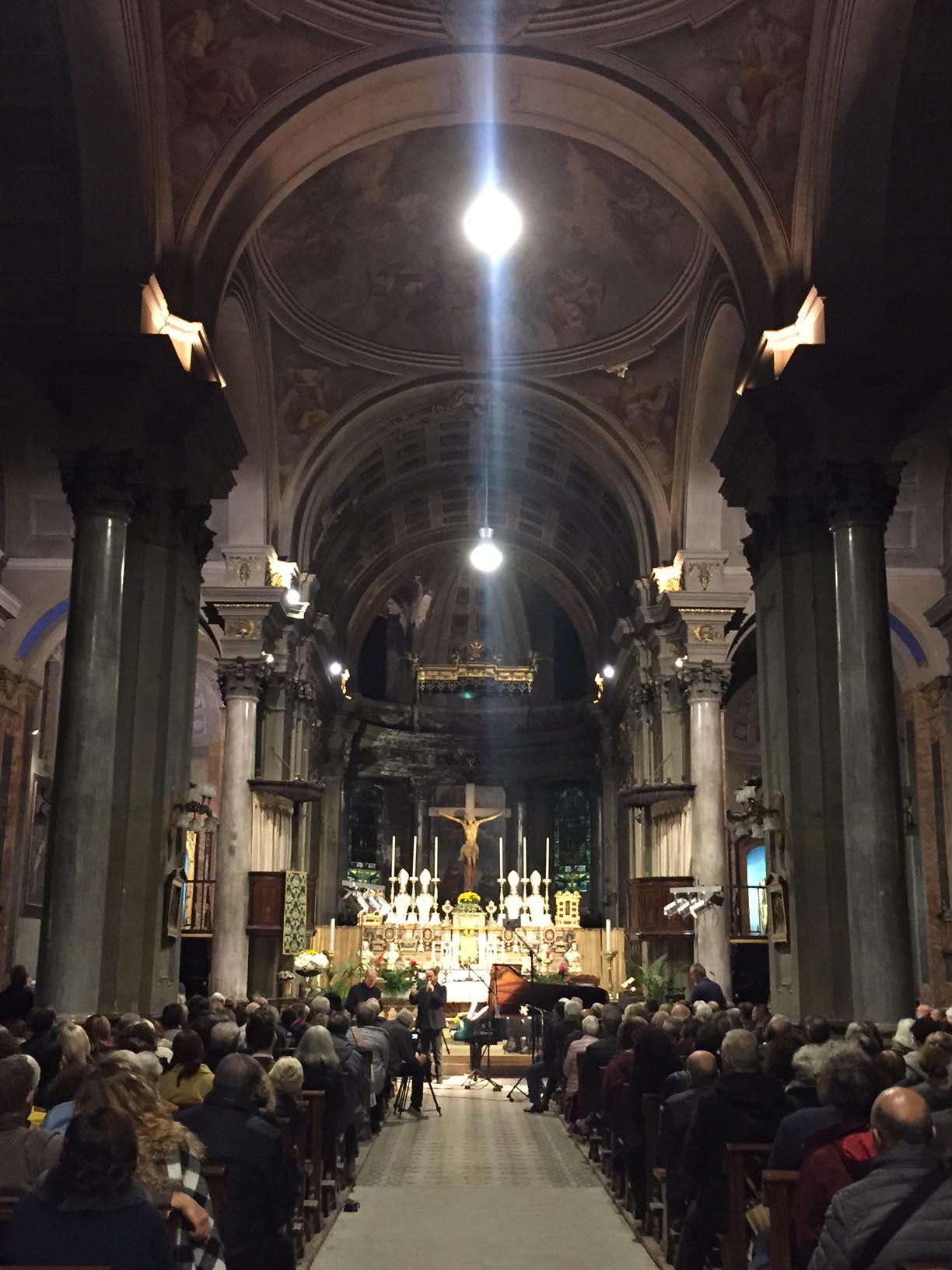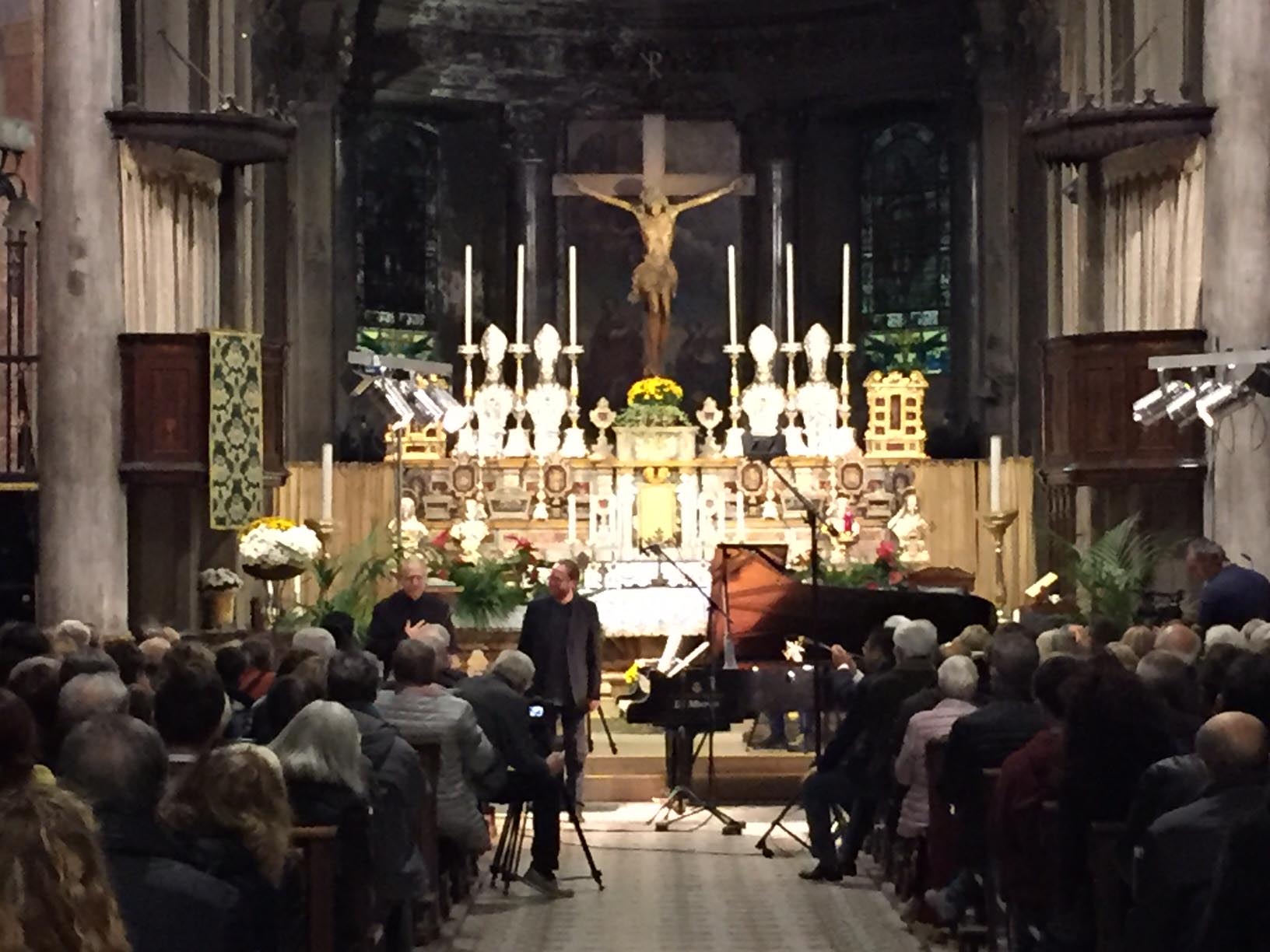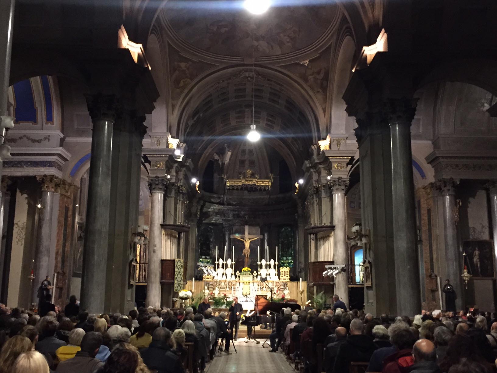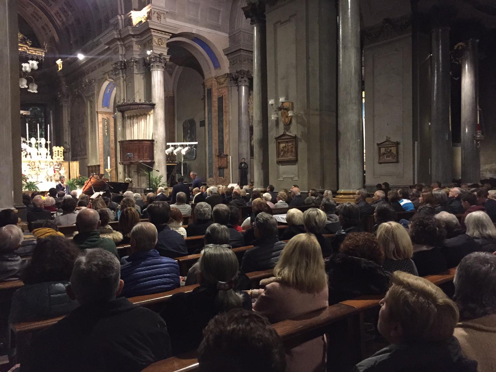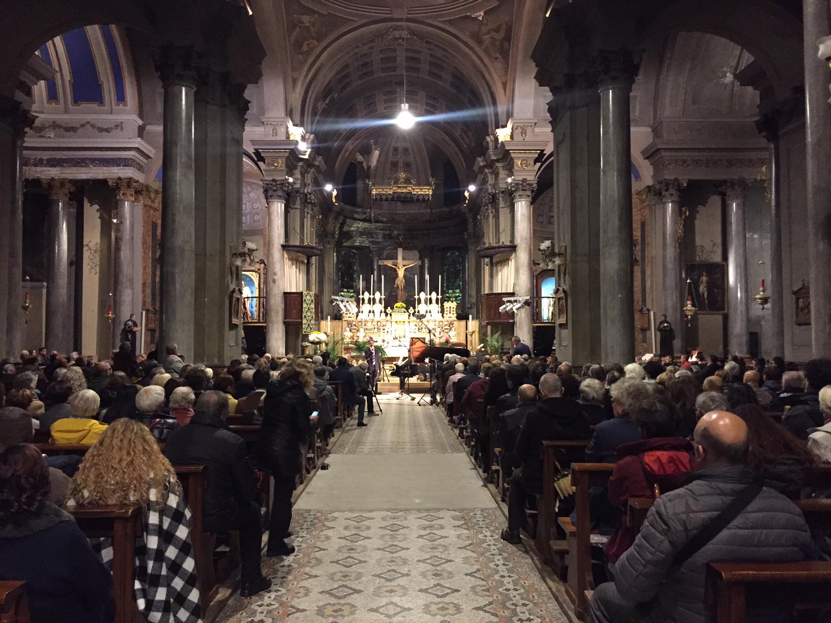 anche nelle navate laterali e le cappelle aperte, la chiesa Collegiata domese sabato sera per un evento di rilievo internazionale, ovvero il concerto proposto dall'Associazione Mario Ruminelli per festeggiare la nascita della Fondazione Paola Angela Ruminelli presieduta da Antonio Pagani. La serata ha visto insieme due musicisti famosi: Shlomo Mintz uno dei più grandi violinisti contemporanei che ha calcato come solista e come direttore il palcoscenico dei più celebri teatri del mondo, e Roberto Prosseda, famoso interprete del pianoforte romantico, in particolare di Chopin e di Mendelssohn, che ha raccolto riconoscimenti in tutto il mondo. Il concerto è stato introdotto dal neo presidente dell'associazione Massimo Gianoglio: “I due artisti – ha spiegato Gianoglio - da tempo avevano manifestato il desiderio di esibirsi insieme e l’occasione si è presentata proprio con il concerto inaugurale della Fondazione Ruminelli”. Prosseda ha raccontato di essere andato in Perù per preparare il concerto in quanto Mintz era impegnato Sud America in tournée. I due musicisti hanno incantato per due ore il numeroso pubblico con i pezzi di Felix Mendelssohn, Sonata MWV Q 12, in fa minore e Sonata MWV Q 26, in fa maggiore e di Cesar Franck, Sonata in la maggiore. Come brano conclusivo è stato eseguito un pezzo scritto da Shlomo Mintz, Sonata in do maggiore. L’Associazione Culturale “Mario Ruminelli” è stata fondata nel 2015 per volontà della professoressa Paola Angela Ruminelli, residente a Genova, morta nel 2016, discendente da una famiglia di musicisti fortemente legata a Domodossola. Giulio Ruminelli, nonno di Paola, era di Torre del Lago, amico di Giacomo Puccini, trasferitosi da giovane a Domodossola dove fu per decenni direttore del Civico Corpo Musicale, organista della Collegiata e creatore di una Scuola di Pianoforte nella sua casa in via Galletti. Suo figlio Mario, padre di Paola, divenne un insigne violinista, insegnando al Conservatorio di Brescia, dove nacque Paola, fino al trasferimento a Genova dove divenne primo violino al Teatro Carlo Felice. Paola è vissuta a Domodossola nel periodo bellico, frequentandovi le scuole elementari. L’Associazione si propone quindi di organizzare eventi in città e per lo più gratuiti, per aderire e rispettare la volontà della fondatrice e finanziatrice.