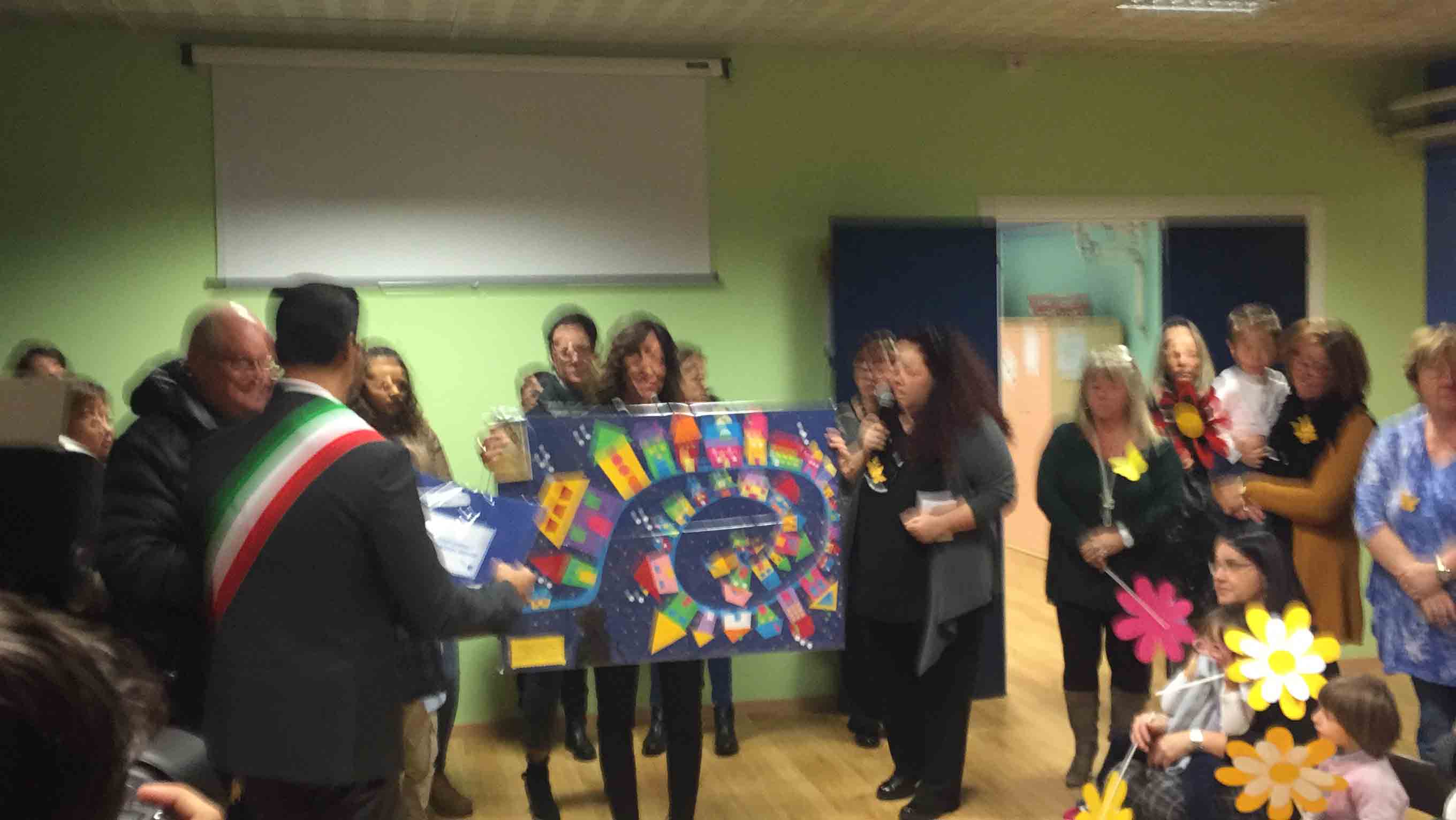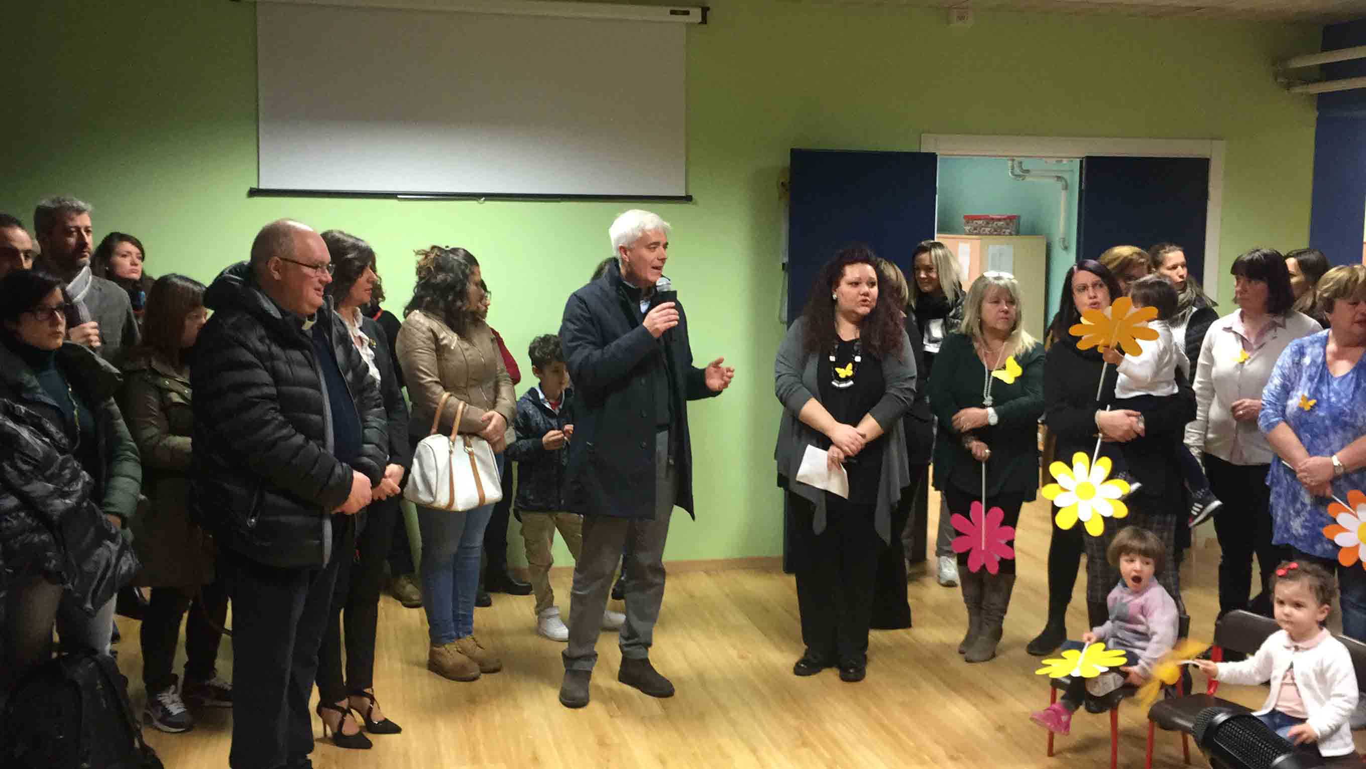 il ristrutturato asilo Terezin in piazza Chavez, riaperto in tempi record, con i lavori iniziato lo scorso luglio e l'apertura con le nuove aule e la ristrutturazione per l'inizio dell'anno scolastico a fine settembre. Le maestre hanno raccontato dello sguardo estasiato che hanno avuto i bambini appena rientrati nella scuola ristrutturata: "In tempi brevi hanno cercato di rendere accogliente questa scuola- così la dirigente Chiara Varesi- c'è stato un grande impegno di tutti". "Insieme alla mia squadra cerchiamo di vivere la città come se fosse una grande famiglia-ha detto il sindaco Lucio Pizzi- e infondo lo siamo, perchè siamo cresciuti qui, e questo è lo spirito con cui cerchiamo di affrontare i problemi tutti i giorni. Il lavoro qui alle Terezin è da vedere, siamo davvero soddisfatti". Oltre al sindaco Lucio Pizzi, presente il parroco don Vincenzo Barone, che ha benedetto la struttura, il rappresentante dell'ufficio scolastico regionale Angelo Iaderosa, il personale docente e Ata, la Dsga Graziella Gasparri, gli assessori Franco Falciola e Daniele Folino, il comandante della vicina Guardia di Finanza, e tanti genitori.