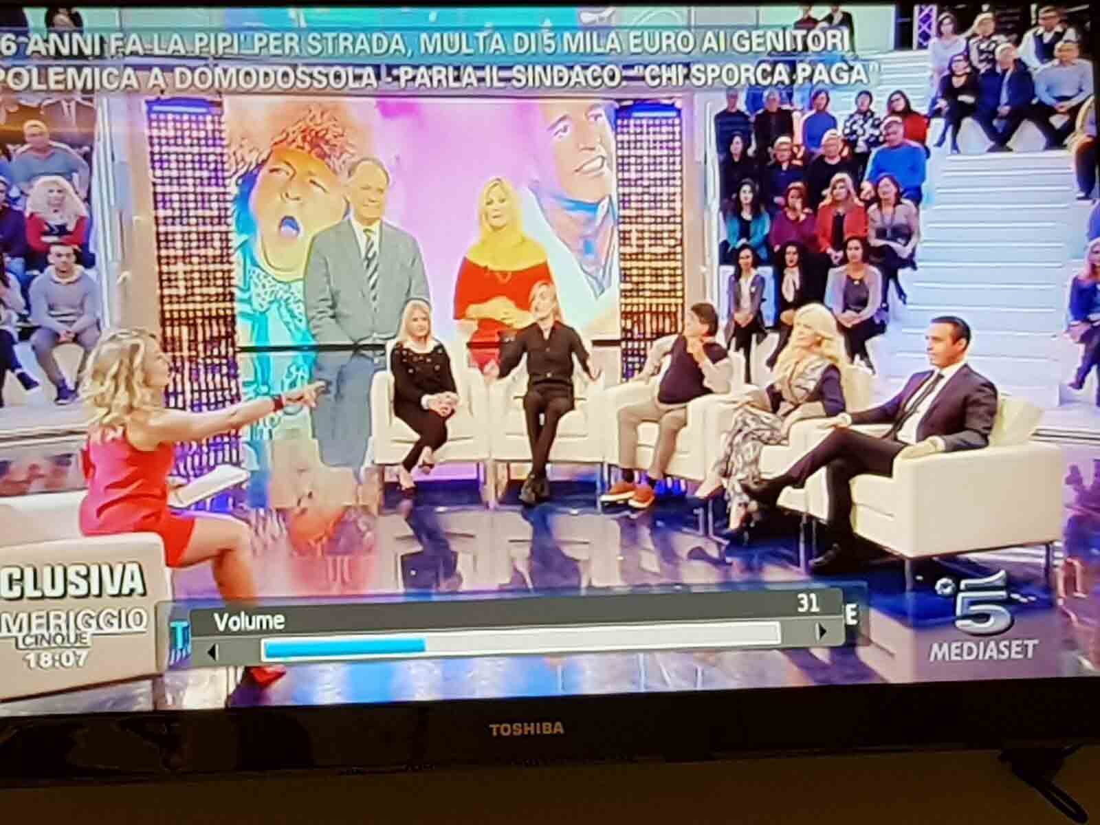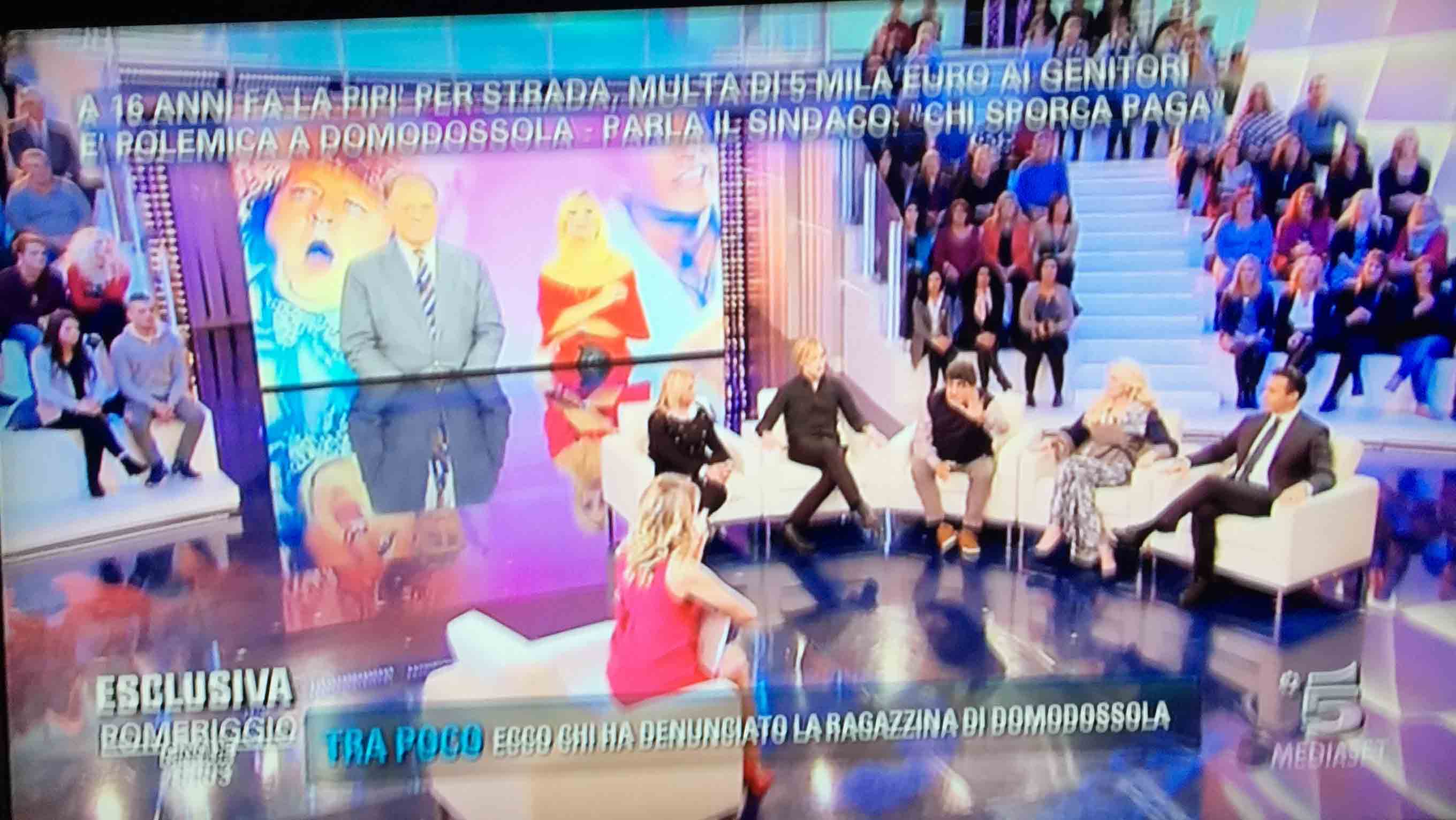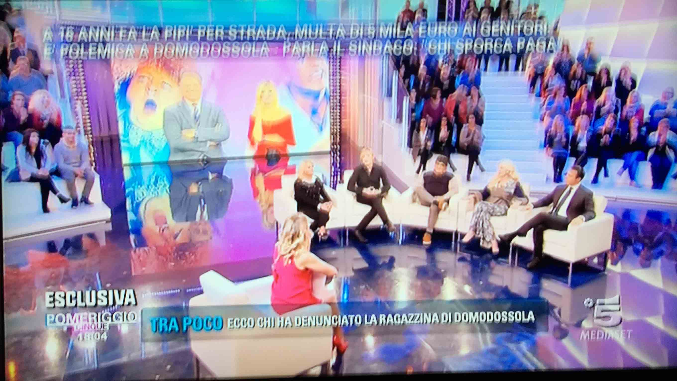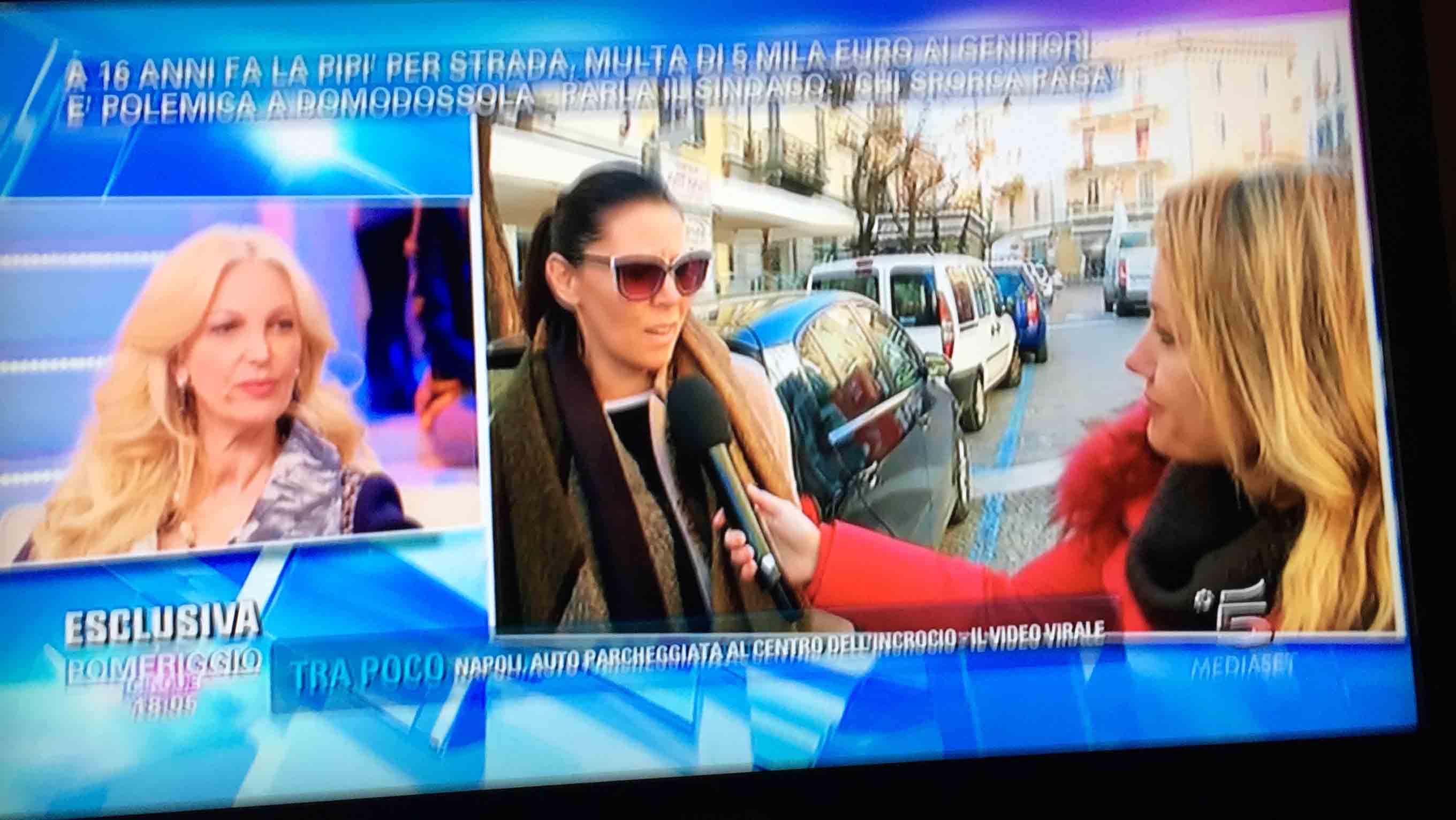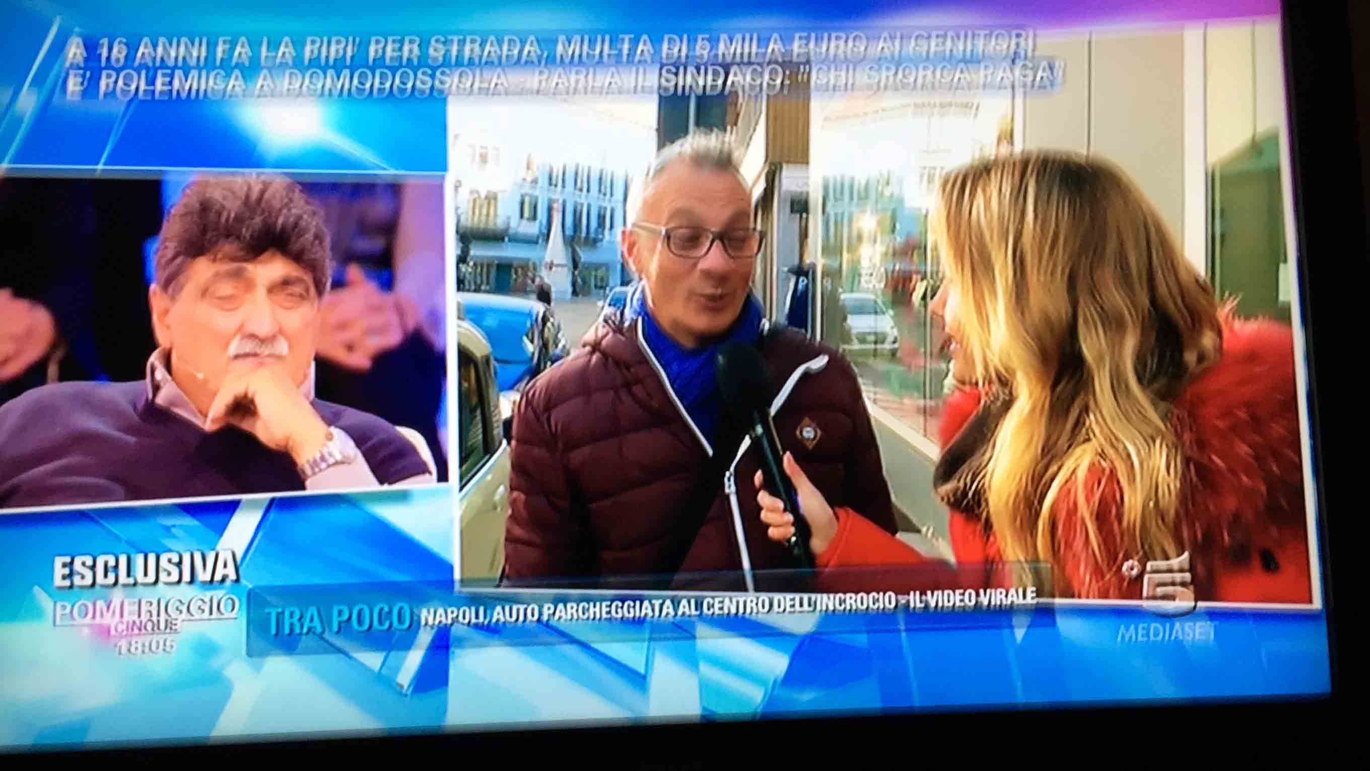per il sindaco domese Lucio Pizzi, invitato da Barbara D'urso a Pomeriggio 5, popolare trasmissione sulla rete ammiraglia Mediaset, per parlare della multa di 5 mila euro inflitta ai genitori di una ragazzina sedicenne che ha fatto pipì in piazza Mercato. I giornalisti di Canale 5 hanno intervistato un barista di piazza Mercato, che ha spiegato che è stata la donna delle pulizie del suo bar a denunciare la giovane, ed in seguito alla denuncia la polizia locale ha effettuato le indagini, riconoscendo dai video delle telecamere di sicurezza i due amici che erano con la ragazzina, e quindi riuscendo poi ad identificarla e multarla. Il barista ha spiegato che la giovane si è messa tra i tavolini del bar a fare la pipì, intorno alle 4,30 di notte, e che la donna delle pulizia l'ha sgridata, a quel punto si sono intromessi i due amici della ragazzina, che avrebbero inveito contro la donna delle pulizie. In trasmissione molti opinionisti hanno animato la discussione, evidenziando la mancanza di bagni pubblici, la disparità di sanzione rispetto ai 400 euro inflitti alla donna che non aveva raccolto la deiezione del suo cane. In una serie di interviste effettuate ad alcuni passanti in centro a Domo in molti hanno confessato di avere fatto, almeno una volta nella vita, la pipì in strada. Pizzi ha spiegato che la sanzione è quella prevista per legge, ed ha fatto notare a chi obbiettava che era "pericoloso" venire a visitare Domo, che "basta rispettare la legge".