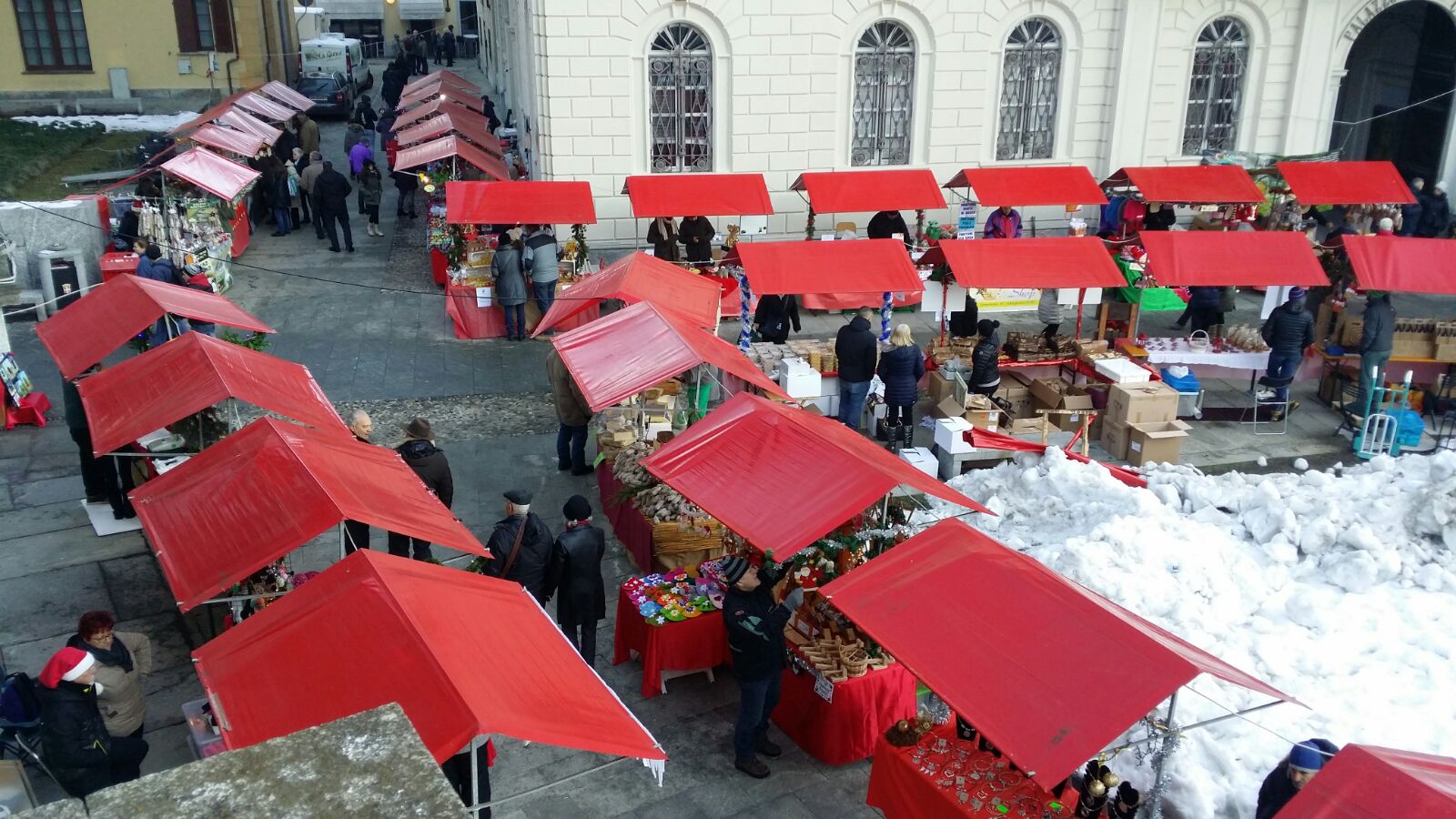 i battenti questa mattina i mercatini di Natale di Domodossola. Le tipiche bancarelle in legno dal tetto rosso regalano in questo week end una magica atmosfera natalizia al borgo della cultura. La pro loco in collaborazione con il comune domese per questa ventesima edizione ha puntato sulla " qualità"del mercatino con la presenza di un alto numero di hobbisti. " Siamo molto soddisfatti di questa prima giornata: sono circa duecento le bancarelle dislocate in piazza Mercato e nel borgo. Abbiamo selezionato ulteriormente la qualità dei prodotti esposti " racconta Mauro Valentini, tesoriere della Pro Loco di Domodossola. Domani si replica dalle ore 9 alle 19. Una ghiotta occasione per chi è ancora a caccia di qualche strenna. Oggetti regalo natalizi, prelibatezze e prodotti dolciari ma anche tanta allegria con animazione, spettacoli e punti di ristoro per le vie del centro storico.
