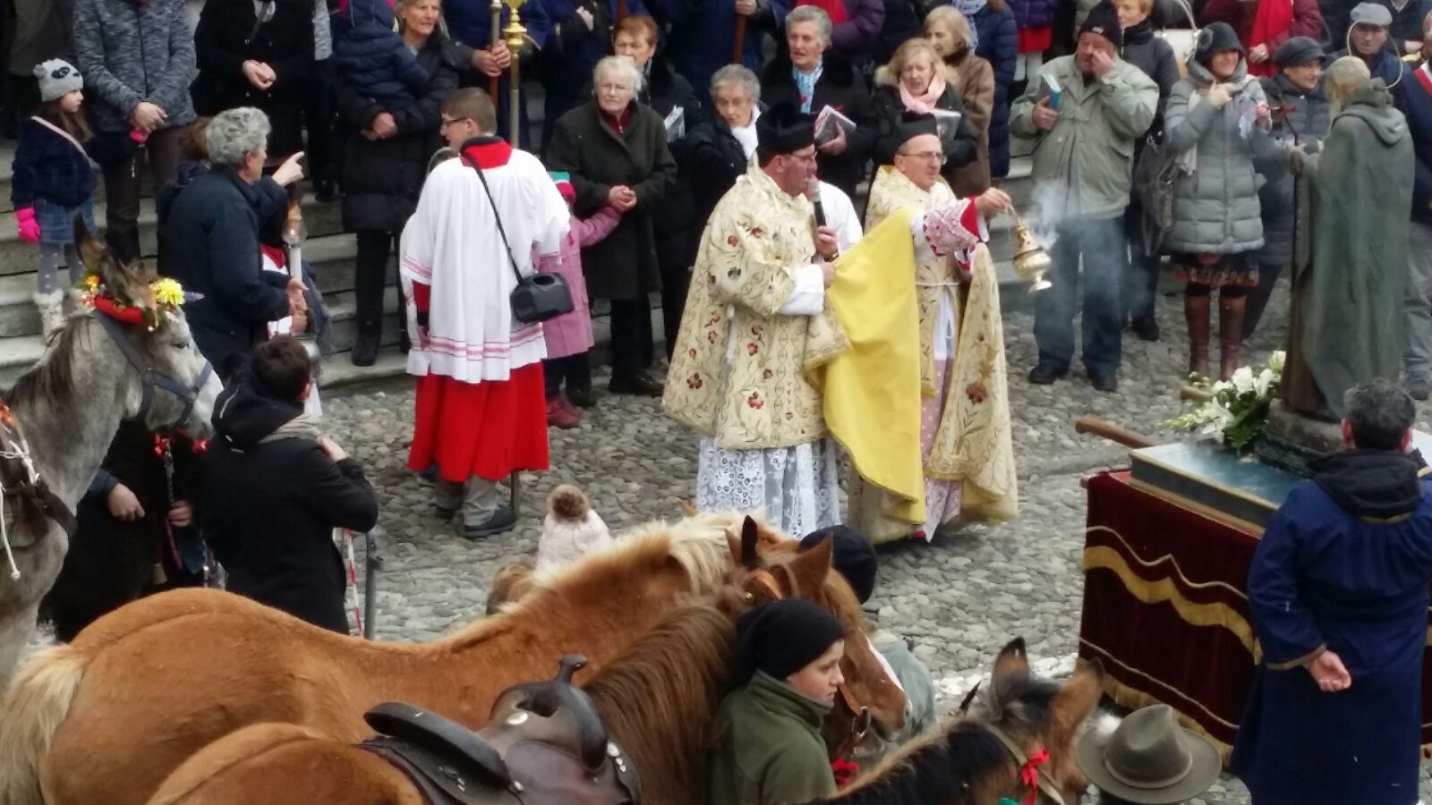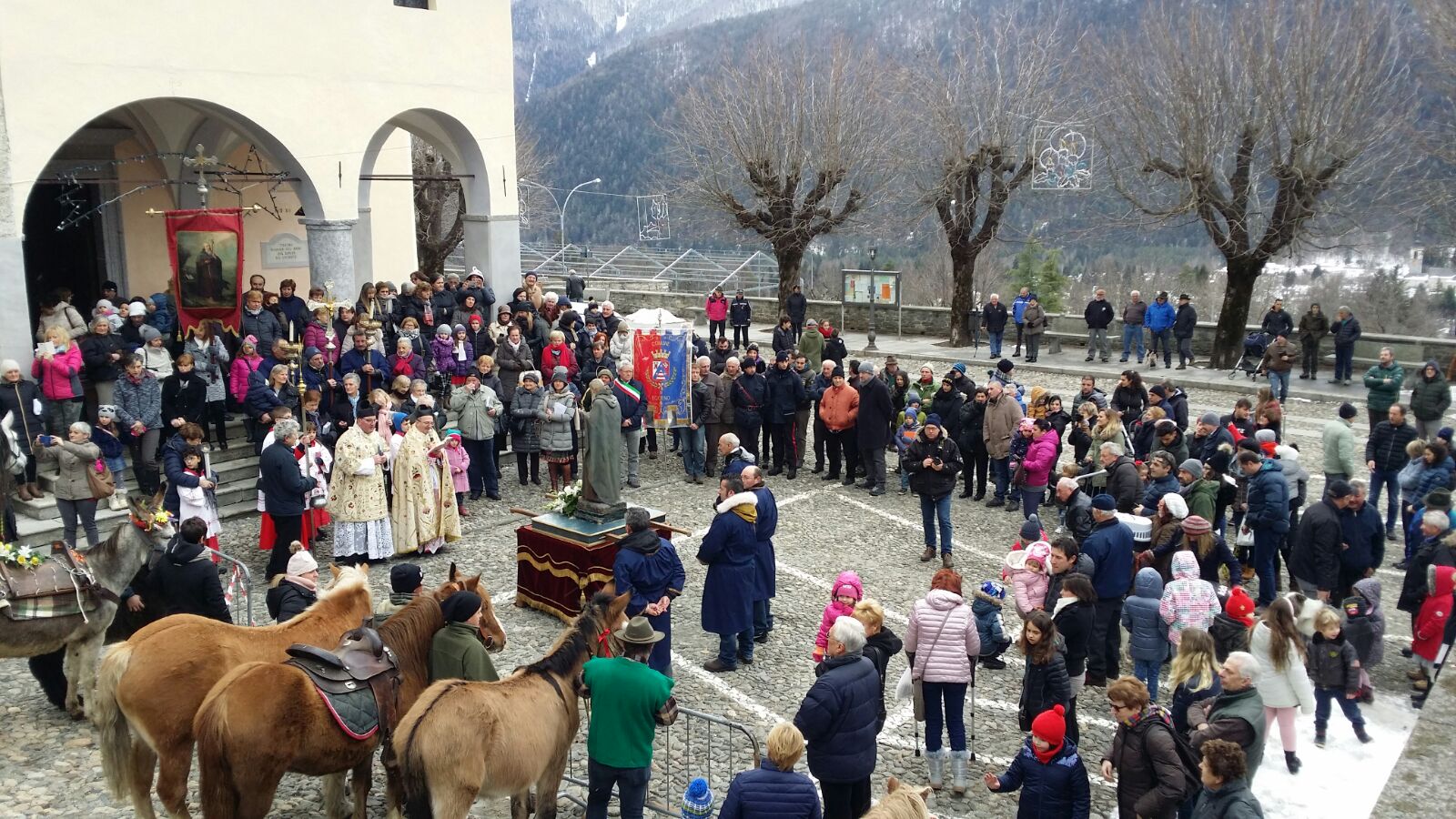 TOCENO- 17-01-2018- Toceno questa mattina ha celebrato il suo santo patrono, Sant'Antonio Abate con la tradizionale festa organizzata dall' Associazione Festeggiamenti Giochi Tocenesi in collaborazione con il comune del popoloso borgo vigezzino. Alla Santa Messa celebrata da don Gianluigi Cerutti e don Paolo Montagnini ha fatto seguito la processione per le vie del paese e la benedizione degli animali e del pane nero. Nonostante si trattasse di un giorno feriale, in tanti hanno preso parte alle celebrazioni, perché è una festa particolarmente sentita in paese, raccontano alcuni organizzatori: Marino Ferraris, vice presidente dell' Associazione Festeggiamenti Giochi Tocenesi, Flavio Zamboni, presidente Gruppo Alpini Toceno e Matteo Bona,presidente pro loco. Il pane nero benedetto oggi dal parroco è stato prodotto dalla panetteria Ielmoli, mentre da un'idea di Giuseppe Bergamaschi, i bambini della scuola materna e primaria del paese hanno realizzato lunedì mattina i " pupit": pane con la forma di un bambino. La manifestazione prosegue oggi pomeriggio con il vespro e l' incanto delle offerte presso la casa parrocchiale. Si conclude alle 21 con la serata danzante con l'orchestra " I Gemelli".
