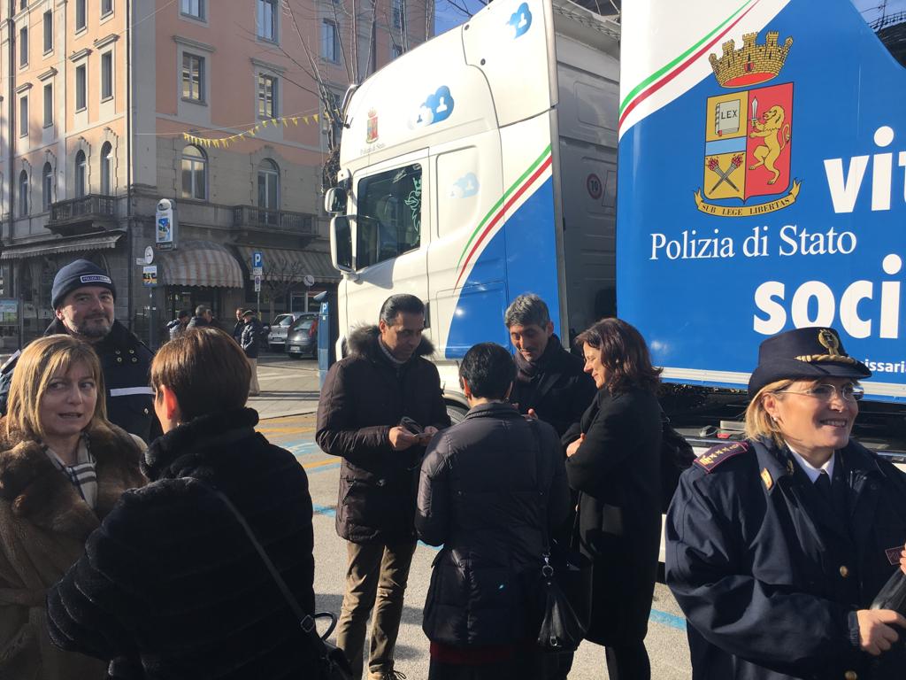 DOMODOSSOLA- 30-01-2018- E' approdato stamane a Domo, davanti alla stazione, dove è stato visitato dai rappresentanti di varie scuole, il tir della polizia allestito per il progetto “Una vita da social”, per educare i giovani ai rischi del web: "!Perennemente connessi alla rete e, attraverso il web, tra loro- spiegano dalal Polizia- sono gli adolescenti di oggi, fruitori instancabili di social networks, “contenitori” nei quali finisce una parte considerevole della loro vita: foto, video, confidenze, anche le più intime.