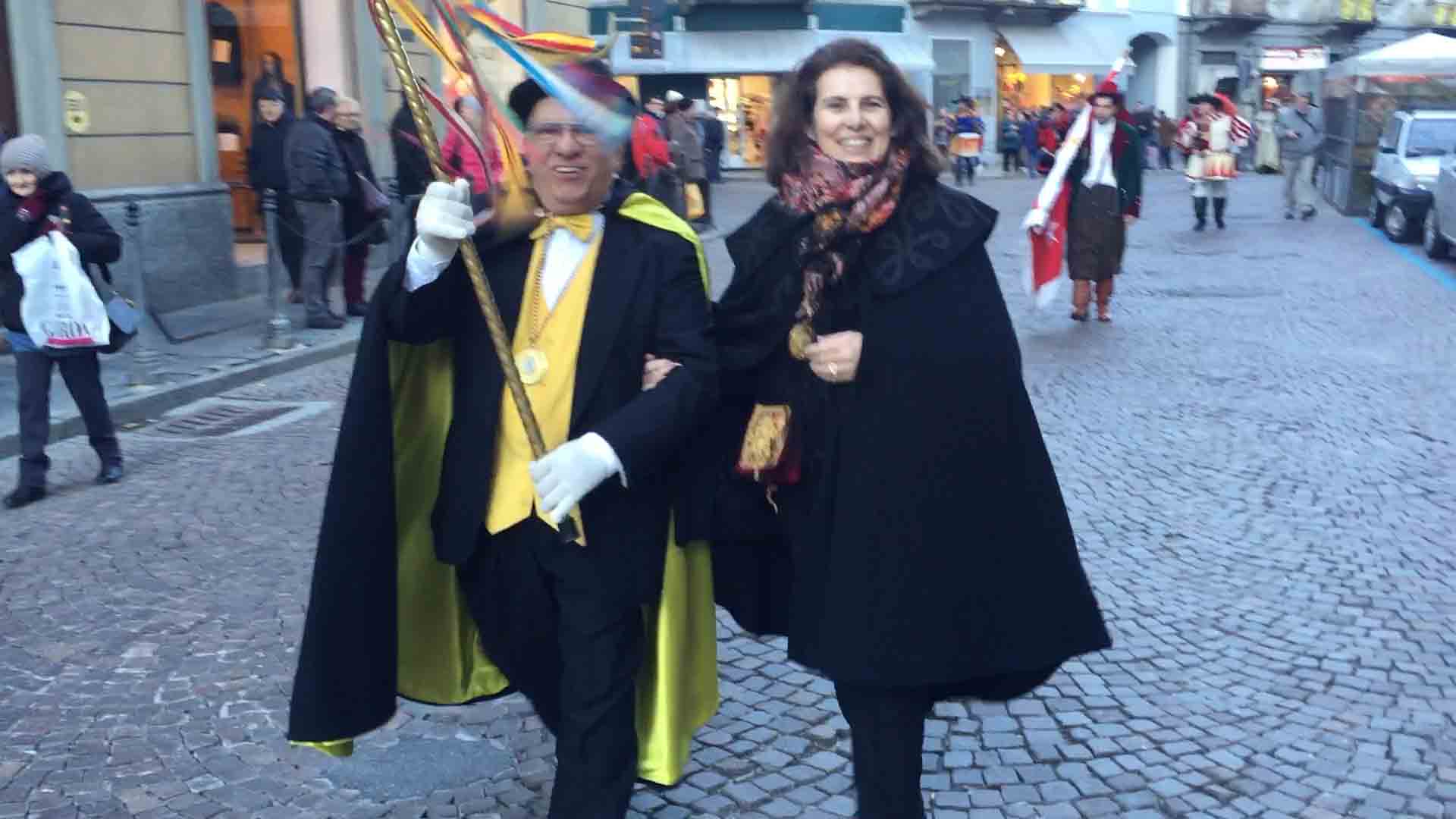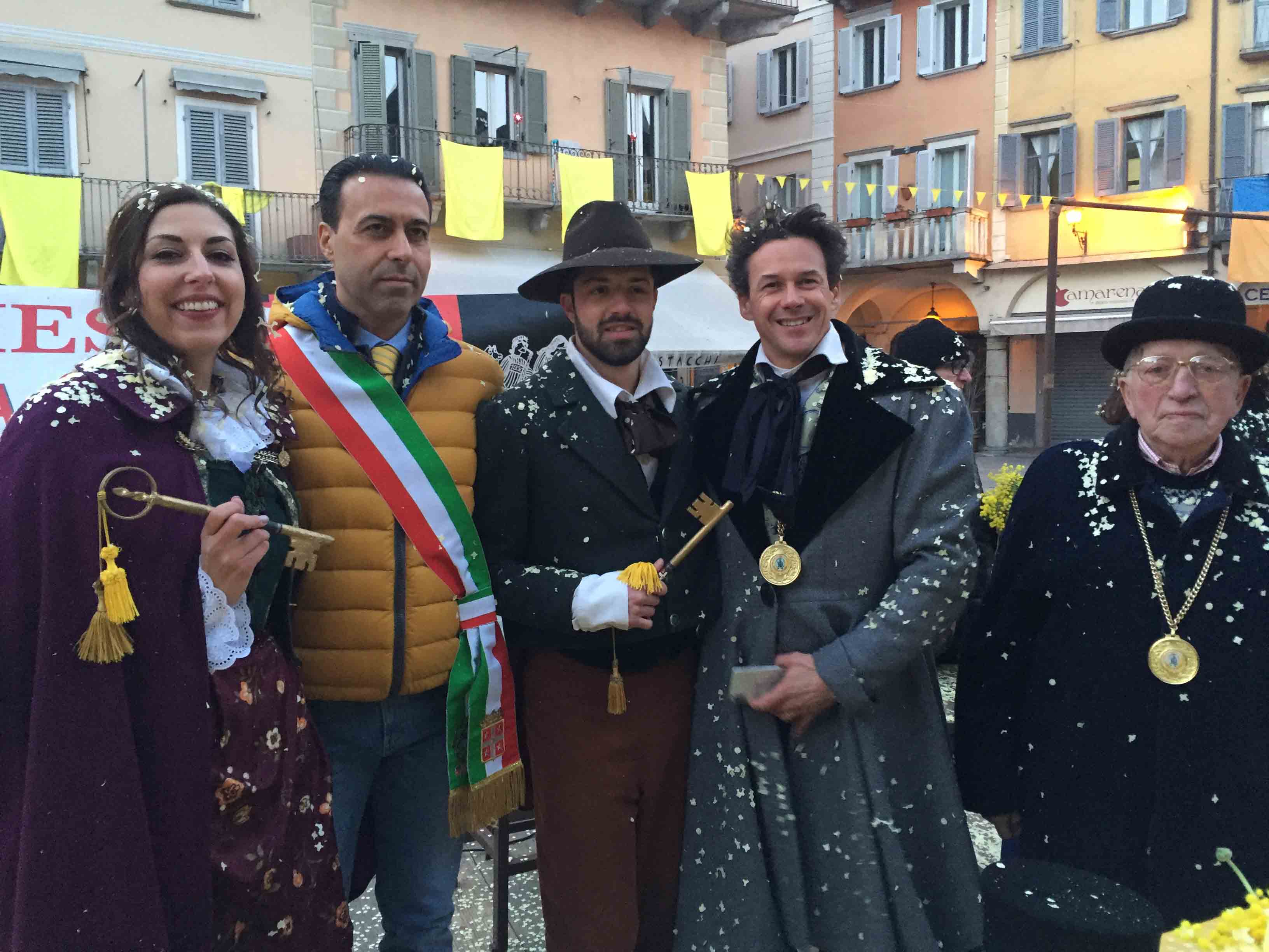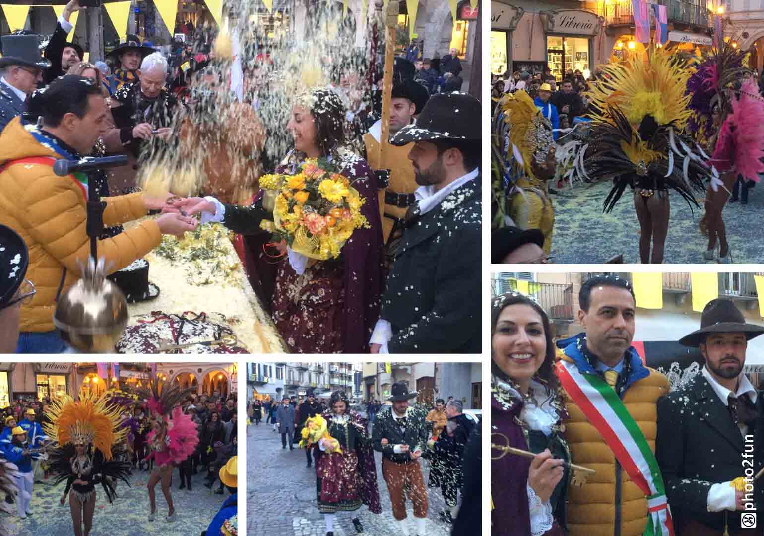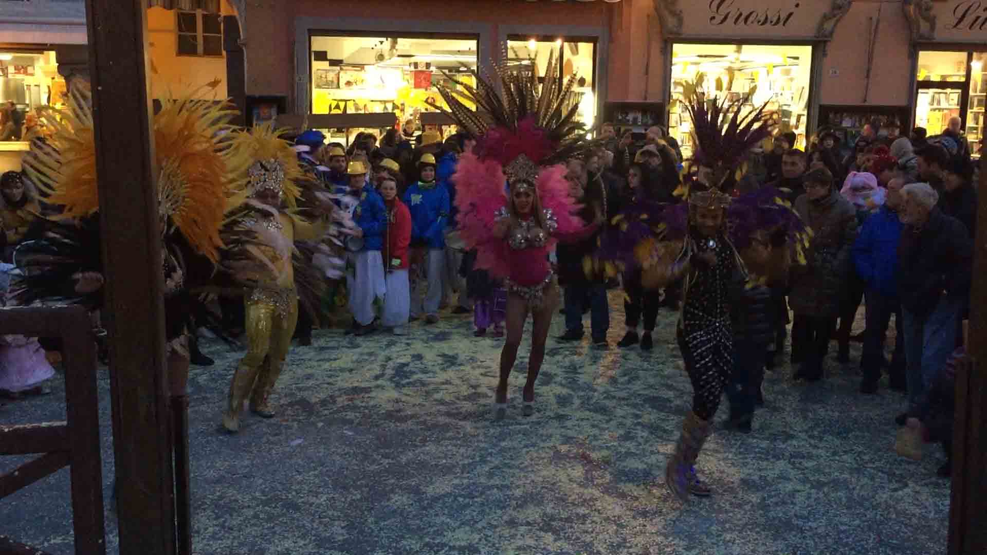 brasiliane per l'apertura del Carnevale domese 2018. Il sindaco Lucio Pizzi ha atteso sul palco in piazza Marcato che arrivasse la sfilata con il Civico corpo musicale, la Corte di Mattarella i notabili del Carnevale, i membri del Comitato Polenta e Sciiurii, e l'applauditissimo gruppo di ballerini e musicisti brasiliani. Poi i saluti di rito del presidente Alberto Polacchi, che ha ringraziato i presenti, tra cui i membri del comitato carnevale di Villadossola, ed i soci onorari del Carnevale domese, tra cui il decano Franco cantonetti, 90enne, che ha fatto un breve saluto ai presenti. Il sindaco Lucio Pizzi, in prima pagina sul giornalino satirico del Carnevale Ul Trusur, ha invogliato il Togn, la Cia ed i membri del Comitato a divertirsi e far divertire, nel rispetto delle regole e della civile convivenza: "Siate d'esempio", ha detto Pizzi. Poi la consegna delle chiavi, l'immancabile "Viva nui" cantato dal Comitato ed i balli e le musiche brasiliane. In piazza la distribuzione gratuita della polenta di Beura col gorgonzola. Domenica il Carnevale domese farà il "Giro dei Carnevali", partendo da quello della Cappuccina e poi a Calice ed a Malesco. Alle 18 in Collegiata la messa per i soci del comitato defunti.