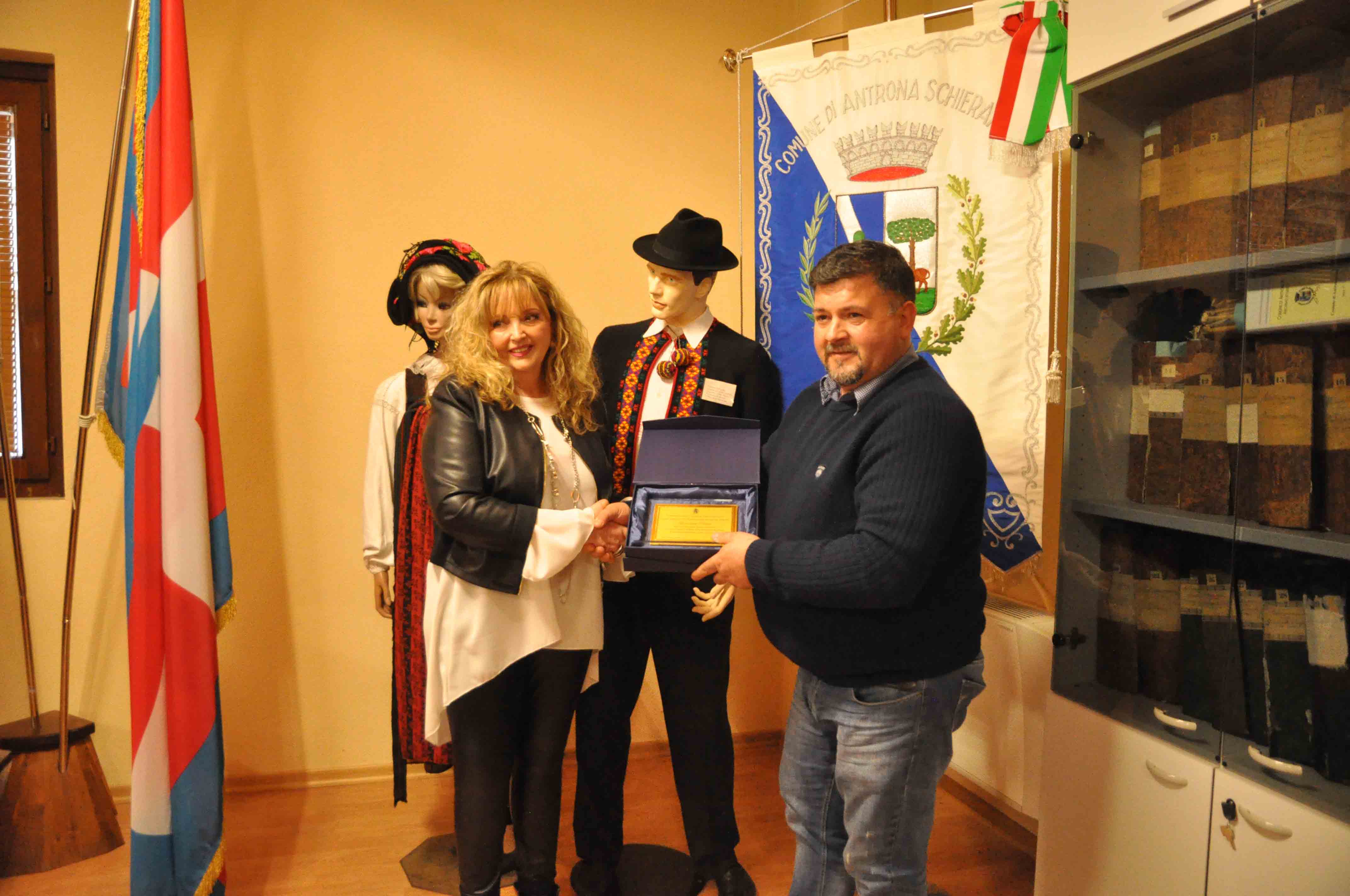 in comune ad Antrona verso il Ballo delle Deb, organizzatrice e protagonista, per avere permesso alla risela, la trina finissima eseguita ad ago, tradizionale della Valle Antrona, di essere messa in bella mostra sull'abito da sposa indossato dalla modelal domese Selena Russo. Martedì 20 in aula consigliare la cerimonia con la presidente dell'Associazione Ape vco Giovanna Pratesi, e la debuttante Selena Russo: “Presso il prestigioso Regina Palace Hotel di Stresa- spiegano da valleantrona.com- è andato in scena tra le note dell'orchestra dei G.M.O. (Giovani Musicisti Ossolani) l'evento più atteso dell'anno, il Ballo delle Debuttanti. Organizzato dalla Presidente dell'Associazione no profit Ape Vco Giovanna Pratesi, che quest'anno ha permesso di poter partecipare anche la Valle Antrona con il suo abito da sposa ricamato con la Risela. L'abito realizzato dalla stilista Maria Grazia Regazzi del negozio di Via Italia a Domodossola e ideato dalla Pro Loco Valle Antrona è stato indossato dalla debuttante Selena Russo di Domodossola, che ha così rappresentato in questa serata la Valle Antrona, valorizzando il tradizionale pizzo locale chiamato Risela. Si tratta di una trina finissima eseguita ad ago e costituita da una serie di nodi e asole, eseguiti con infinita pazienza da Jolanda Frisa (Maestra Ricamatrice). La trina della Risela, nella provincia del Verbano Cusio Ossola, viene eseguita solo in Antrona e fa parte della storia, come testimonia un quadro della Collegiata di Domodossola del 1615 in cui S.Carlo Borromeo, arcivescovo di Milano, è vestito con una cotta dal bordo decorato da una alta fascia di Risela. Presente all'evento anche il Gruppo Folcloristico di Antronapiana in qualità di testimonianza del ricamo, visibile sui loro splendidi costumi tradizionali lavorati sapientemente a mano. Il sogno così è diventato realtà, l'abito da sposa di Antrona è sceso per primo dall'imperiale scalinata del Regina Palace Hotel e a seguire le altre quindi debuttanti, così come fecero le prime Miss Italia , negli anni 40' e 50' dove l'Hotel Regina Palace ospitò le finali del concorso Nazionale e sul Lago Maggiore venne incoronata Lucia Bosè. Selena Russo è già un volto noto tra le passerelle italiane dove ha già conquistato diverse fasce tra queste Miss Eleganza e Miss Volto del Cinema 2017 e al mitico Piper Club di Roma la vista trionfare permettendogli a novembre 2018 in Spagna di rappresentare l'Italia alla finale di Miss e Mister Mediterraneo Global International. Martedì 20 marzo presso la Sala Consigliare del Comune di Antrona Schieranco si è svolta la cerimonia di ringraziamento che ha visto protagoniste la Presidente dell'Associazione APE VCO Giovanna Pratesi organizzatrice del Ballo delle Debuttanti di Stresa e la debuttante Selena Russo di Domodossola. Sulle note musicali di Agnese Ricchi e Matteo Carigi Violinisti appartenenti all'orchestra dei Giovani Musicisti Ossolani ha sfilato con l'abito da sposa Selena Russo. Presenti alla cerimonia insieme al Gruppo Folkloristico del Parco Naturale della Valle Antrona e gli Alpini, tutti i Sindaci dei comuni della valle, Claudio Simona di Antrona Schieranco, Alberto Preioni di Borgomezzavalle e Dario Ricchi di Montescheno insieme al Presidente del Consiglio di Domodossola Carlo Valentini. Il Sindaco di Antrona Schieranco Claudio Simona ha consegnato una targa di riconoscimento e un omaggio floreale a Giovanna Pratesi esprimendo gratitudine per aver valorizzato a Stresa il territorio della Valle Antrona ed ha premiato la debuttante Selena Russo Cenerentola di Antrona, per aver partecipato al Ballo delle Debuttanti indossando l'abito da sposa di Antrona ricamato con la Risela. In questa occasione è stato presentato in anteprima il libro "La risela di Antrona" di Jolanda Frisa edito da La Pagina di Villadossola. Soddisfatti Lucia e Massimo Gagliardini di ValleAntrona.com che hanno collaborato e portato a termine questo loro grande evento”.