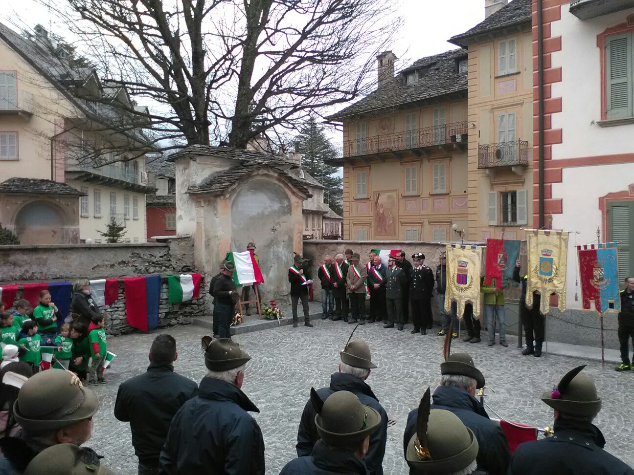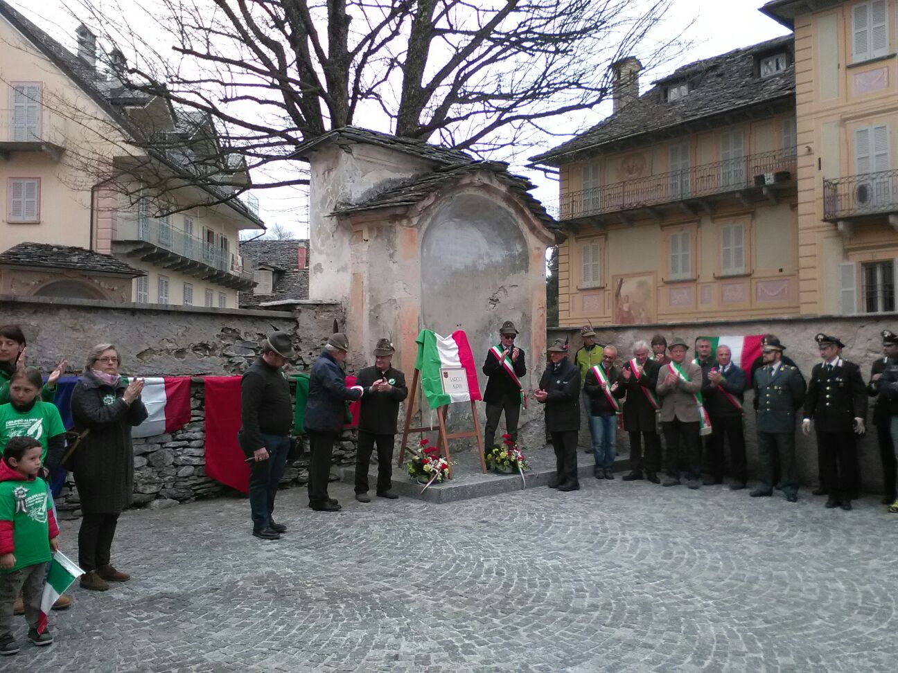 SANTA MARIA MAGGIORE- 08-04-2018- Santa Maria Maggiore in festa, questo fine settimana, in occasione del raduno dei gruppi alpini della valle. Ieri, sabato 7 aprile presso il cinema teatro del borgo vigezzino si è tenuta l'apertura della due giorni: frammenti di memoria della grande guerra in Valle Vigezzo, con la collaborazione dell'associazione combattenti e reduci della sezione valligiana, Pier Antonio Ragozza ha rievocato la prima guerra mondiale con riferimento alla Valle ospitante l'evento. I ragazzi della Scuola Media Andrea Testore hanno letto toccanti passi dalle lettere dei soldati vigezzini al fronte del primo conflitto mondiale. Questa mattina dopo l'inaugurazione ufficiale della nuova sede degli alpini seguita dalla Santa Messa, è stata intitolata la nuova piazza lungo via Rosmini. La targa scoperta reca il nome "Largo Alpini" ed è stata presentata al pubblico alla presenza di tutti i gruppi alpini della Valle e dei sindaci. Prima dell'estate saranno ultimati i lavori della piazza, ponendo l'illuminazione, una panchina e restaurando il dipinto dedicato a San Maurizio, patrono degli Alpini. Anche i bambini della scuola dell'infanzia e della scuola primaria di Santa Maria Maggiore e l'asilo di Buttogno hanno partecipato all'inaugurazione, intonando il canto alpino " Su il cappello" . Per il sindaco Claudio Cottini : " è importante la presenza qui oggi dei bambini: i valori trasmessi dagli Alpini devono arrivare alle nuove generazioni. Gli Alpini devono spiegare ai giovani che sono stati loro aver difeso la nostra Patria, sotto il tricolore, combattendo lontano dai loro affetti. Alpini che sono stati ricordati ieri sera dai ragazzi delle scuole medie leggendo le lettere piene di sentimento che scrivevano dal fronte alle famiglie lontane, con il commento magistrale di Ragozza e le note del Coro dell'ANA." Dopo la scoperta della targa, il corteo ha raggiunto il monumento ai Caduti, dove è stata posata una corona di fiori. Francesco Melegatti, consigliere nazionale ANA ha detto nel suo intervento:" Al nostro presidente nazionale preme molto stare vicino ai bambini e ricordare loro di essere leali, onesti e aiutarli a crescere. Ciò che conta è l'esempio e dare loro il senso dell'onore e della patria." Soddisfatto della giornata anche Giorgio Gagliardi, capogruppo Alpini di Santa Maria Maggiore: " ora vi aspettiamo l'anno prossimo a Druogno per il settimo raduno di valle" .