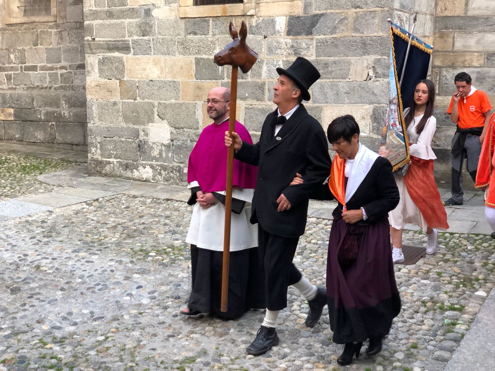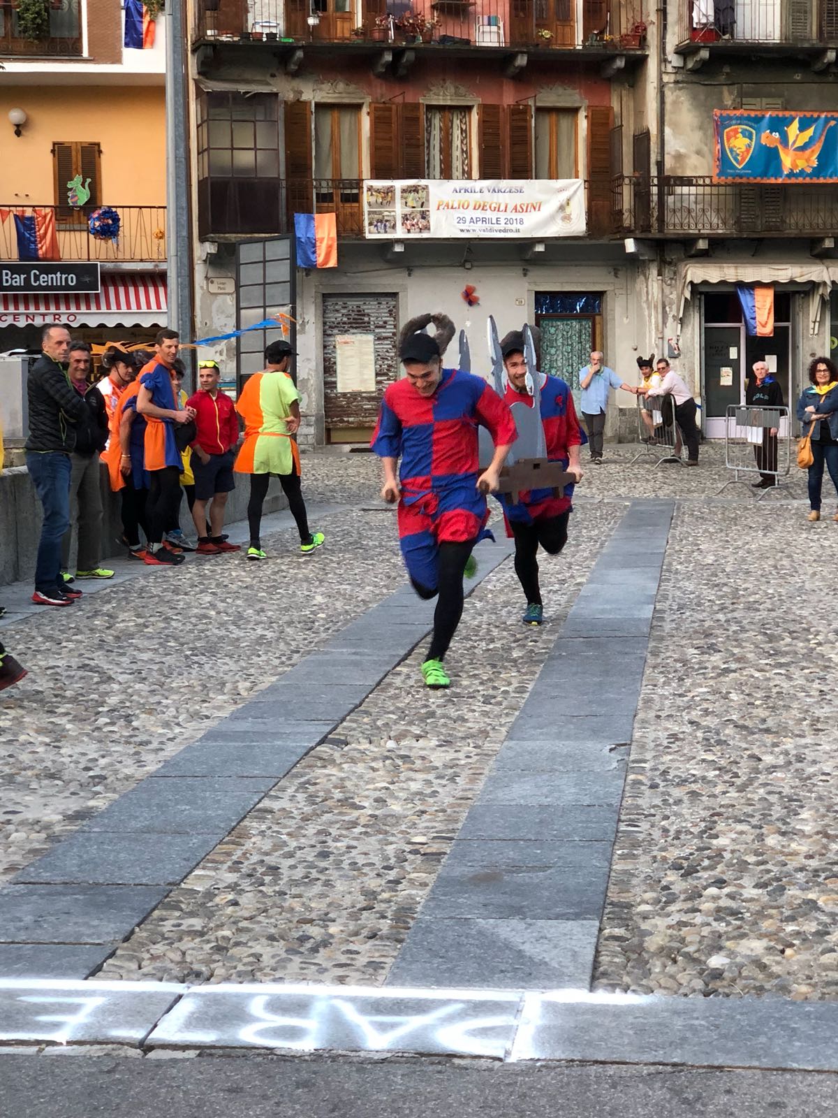 il Palio degli Asini di Varzo 2018 dopo la processione delle frazioni per la richiesta delle autorizzazioni all’ autorità civile e religiosa ottenuta giovedì sera. Quest’anno la grande novità è stata la prova cronometrata che ha permesso ai vincitori di scegliere la griglia di partenza, particolare non indifferente, mentre ai sindaci è toccato estrarre il peso che i propri corridori dovranno portare domenica 29, quando si disputerà la dodicesima edizione di questo particolarissimo e unico Palio. Vincitrice della cronometro è stata la frazione di Cattagna, seguita dalla sorpresa Coggia, terza la frazione di Altreggiolo-Riceno quarti i detentori del palio di Bertonio, poi la Colla, Castello, Alneda e Fontana. Senza tempo il Pasquè vittima, senza conseguenze di una caduta! Da segnalare, purtroppo, l’assenza della frazione Piaggio che all’ultimo momento non è riuscita a presentare la squadra.