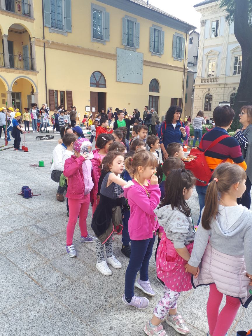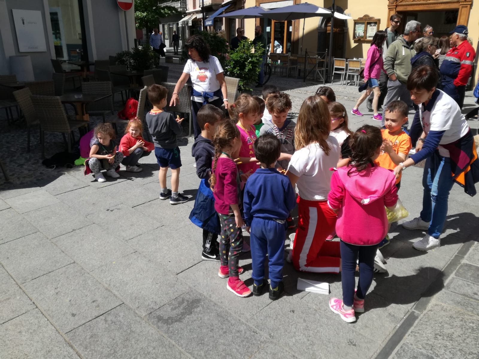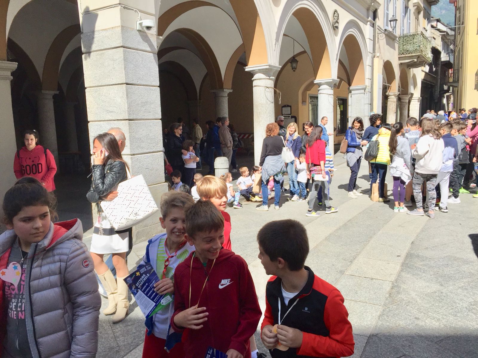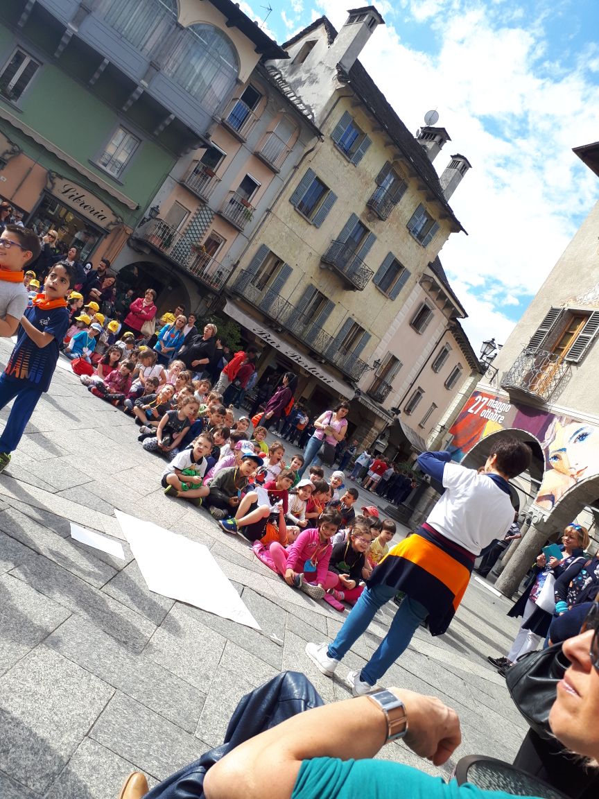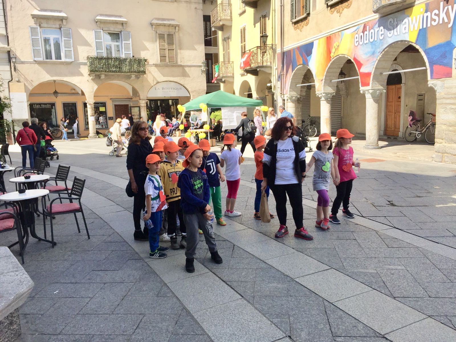 DOMODOSSOLA- 16-05-2018- Una giornata col sole e di festa per i circa mille giovanissimi bambini che stamane hanno invaso il centro del Borgo domese per la giornata finale della sesta edizione dei progetti ludici, sportivi, espressivi e di prevenzione al bullismo condotti durante l’anno all’interno delle scuole. In piazza tutti i bambini che frequentano il 1° ed il 2° Circolo Didattico di Domodossola ,oltre alla scuola primaria e media Rosmini e al liceo socio pedagogico Rosmini, per il numero record di oltre mille partecipanti. Dalle mattina alle 9 e sino a mezzogiorno ,e poi nel pomeriggio sino alle 17 i bambini hanno portato allegria ed animato il Borgo della Cultura imparando il concetto di “fair play”nelle dodici stazioni all’interno di un preciso percorso di divertimento, sperimentazione, condivisione ed apprendimento. Partner dell’iniziativa G.S.H Sempione ’82, C.I.S.S., C.O.N.I, Ufficio Scolastico Regionale Piemonte, rappresentanti dei genitori, Bicincittà, Duemila8 Volley Domodossola”