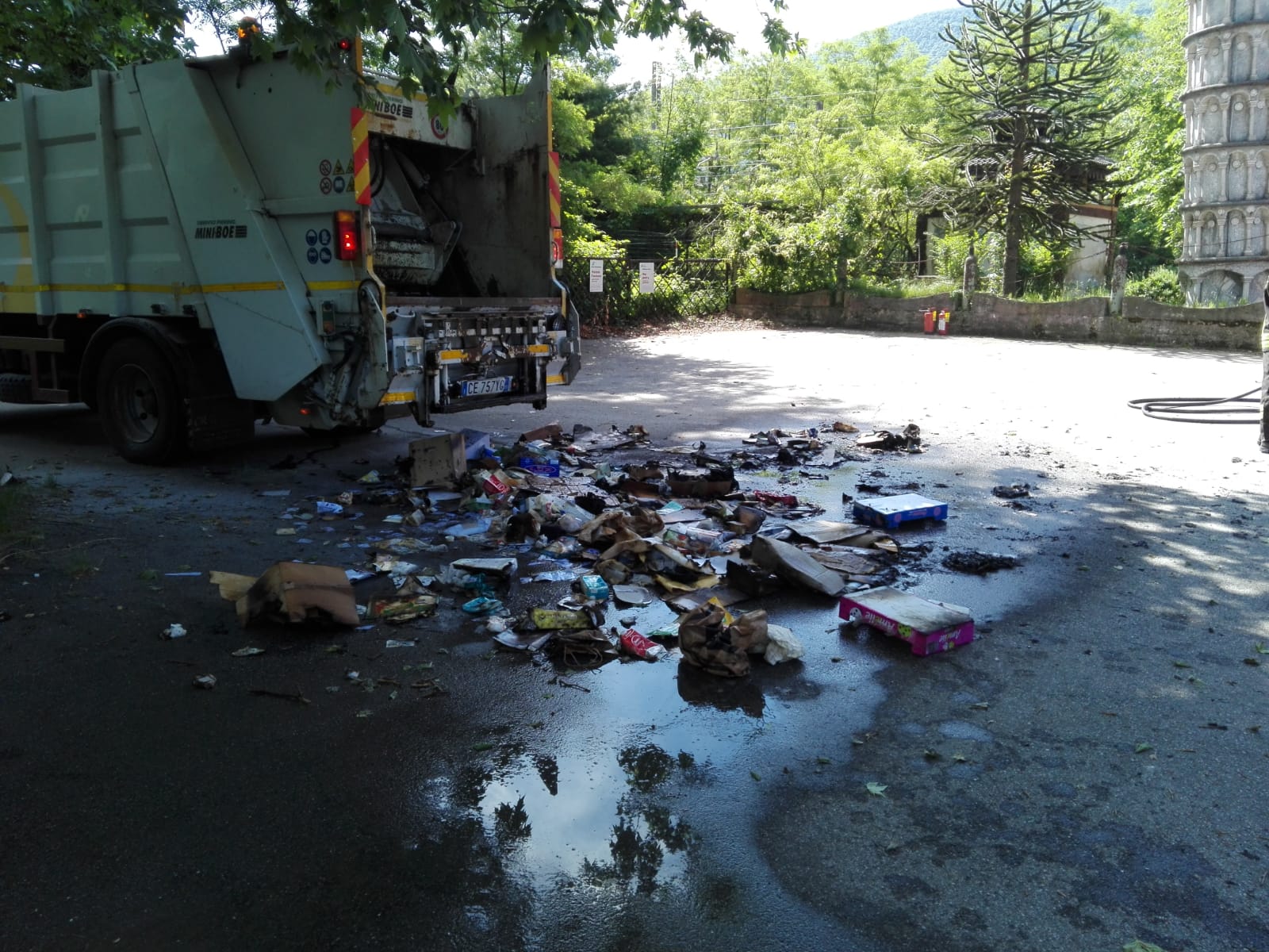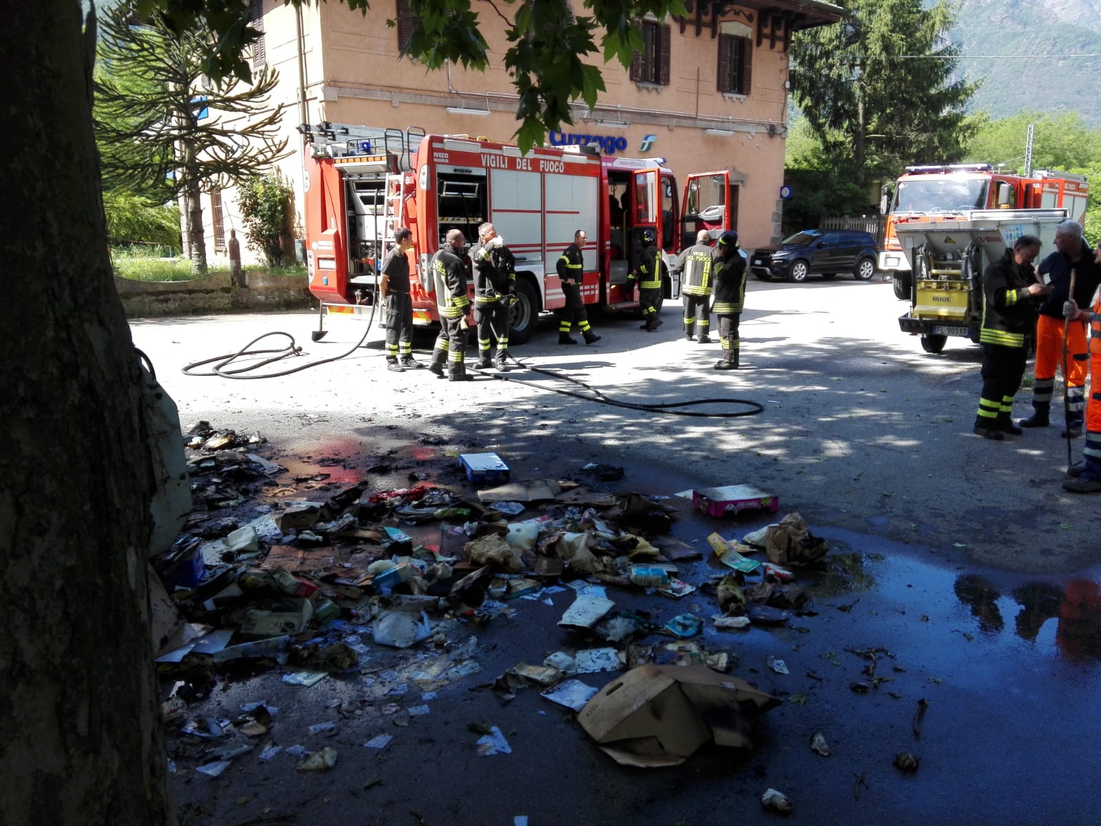 dei rifiuti stamane davanti alal stazioen di Cuzzego. Suk posto i vigili del fuoco che hanno subito spento le fiamme e salvato l'automezzo. Non ci sono feriti. Probabilmente qualcuno aveva buttato un mozzicone di ssigaretta senza spegnerlo nel cestino, che poi è stato svuotato dagli operatori ecologici e buttato insieme agli altri rifiuti.