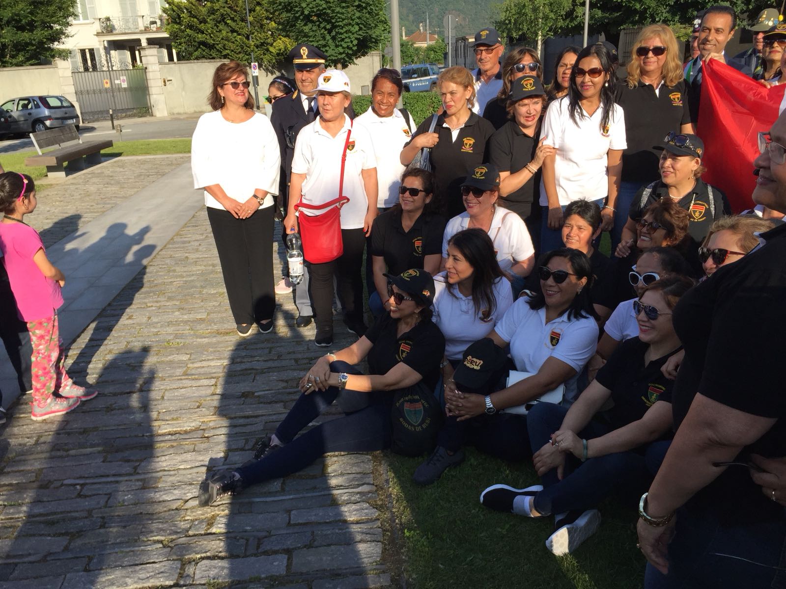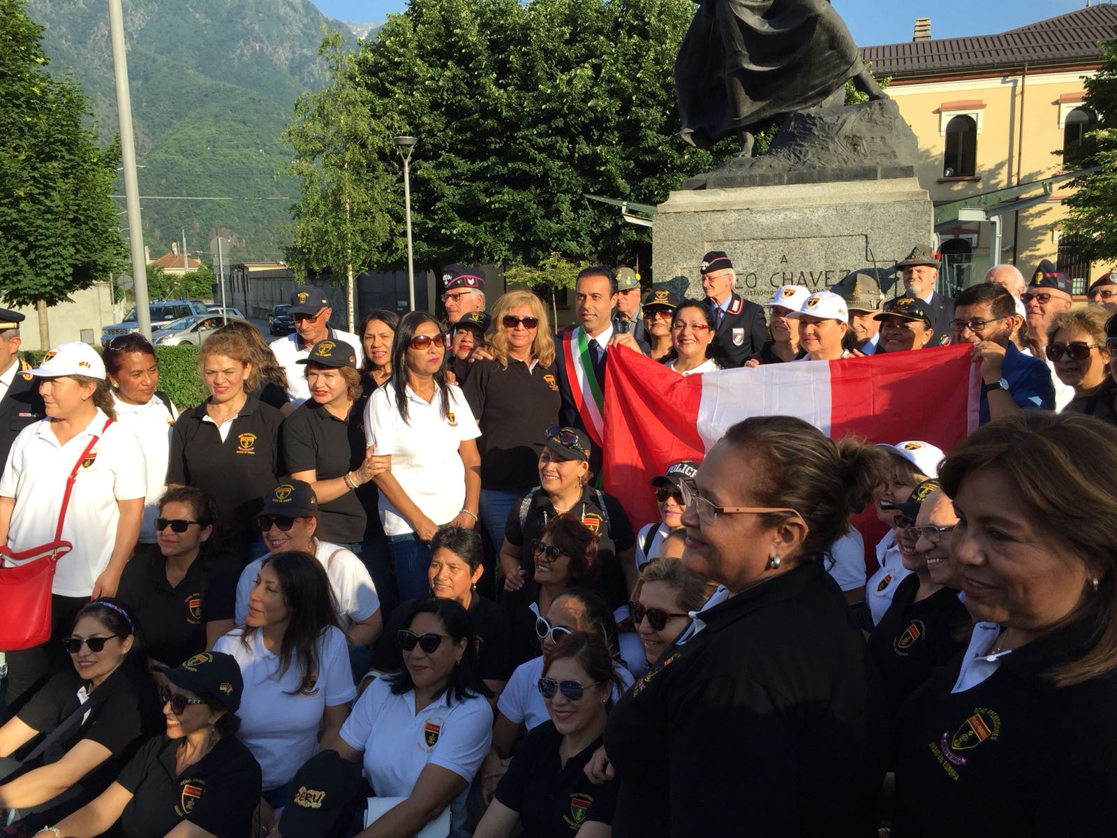 DOMODOSSOLA- 02--06-2018- Una delegazione peruviana è stata accolta venerdì dall’amministrazione domese in Piazza Chavez, Presente una comitiva di circa 70 persone già appartenenti alla Polizia Nazionale del Perù e ora in pensione. Gli ospiti peruviani attraversato il centro domese sino alla piazza intitolata all’intrepido trasvolatore. Qui la delegazione ha deposto un omaggio al monumento dedicato all’eroe peruviano”.