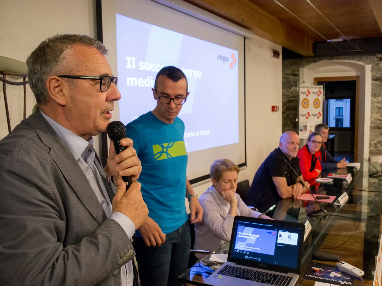 Alla serata organizzata dal CAI di Varzo sono intervenuti Paolo Menghetti Tecnico Soccorritore della Rega, la sua collega Federica Mauri e Giulio Frangioni coordinatore della segreteria Nazionale del Soccorso Alpino Italiano.