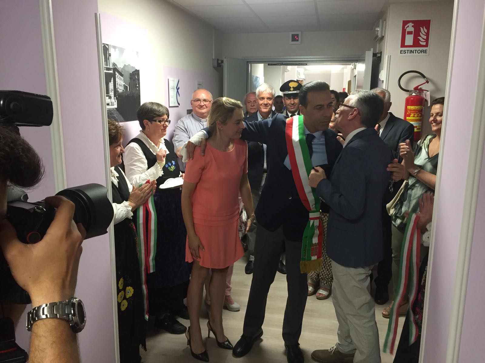 della rinnovata Casa di riposo domese di via Romita, da oggi con 33 posti letto in più di cui 10 dedicati ai pazienti oncologici e 20 di continuità assistenziale, per un totale di 72 posti letto: "Non mi sono preparato un discorso per oggi- ha detto emozionato il sindaco Lucio Pizzi- quando nel 2009/ 2010 nasce l'idea del progetto ne parlammo con la dottoressa Quagliaroli e con l'allora assessore ed amico Angelo Villani, poi non riuscimmo a realizzarlo. E' arrivato il momento delle elezioni, decidere se dovevo candidarmi, ricordo che quando andavo a piedi al lavoro ero indeciso se candidarmi o meno, e quando decisi di farlo pernsavo prima di tutto a questa giornata, se ce la faccio la prima cosa che voglio fare da sindaco è l'ampliamento della Casa di riposo, pensavo. Ed è stata la prima cosa che abbiamo deciso di realizzare due anni fa appena eletti, diedi all'assessore Franco Falciola l'incarico di affrettarsi per fare il progetto. Ringrazio tutti gli uffici che ci hanno sopportato e supportato per riuscire a fare tutto questo in fretta. Abbiamo fatto tanto in questi due anni, rifatto gli asili, la strada per la Prateria, il polo dell'amministrazione nell'ex Tribunale, ma non ci sarà mai niente come questo che oggi inauguriamo". Tutte le stanze hanno nuovi arredi, e quadri e foto dell'Ossola nei locali comuni. Il costo dell'opera è stato di oltre 600 mila euro, di cui 300 mila sono stati messi dal Comune, 100 mila dalla Fondazione Cariplo, circa 200 mila euro dall’eredità di Liliana De Bernardinis. Circa70 mila le donazioni di privati ed associazioni, tra cui Insieme per un Dono, usati per acquistare gli arredi.