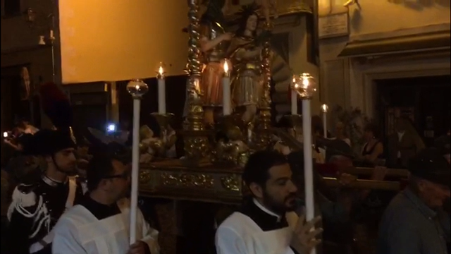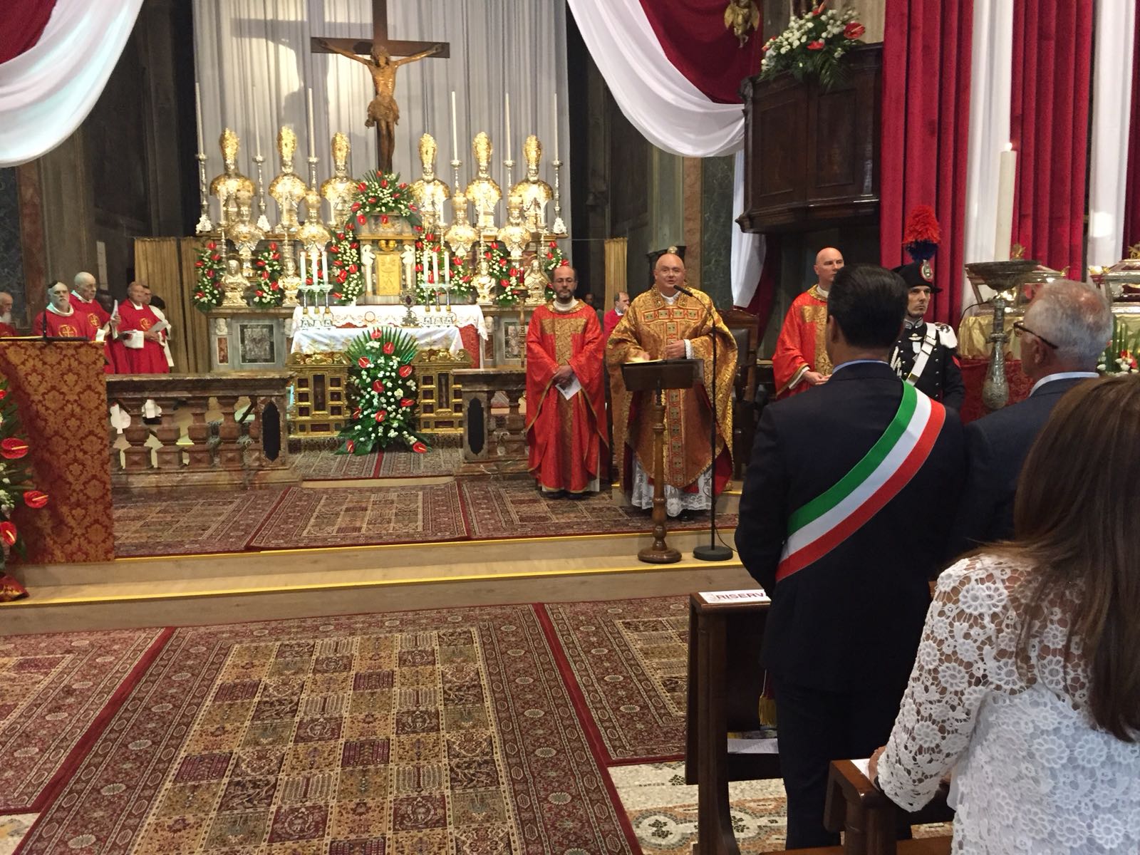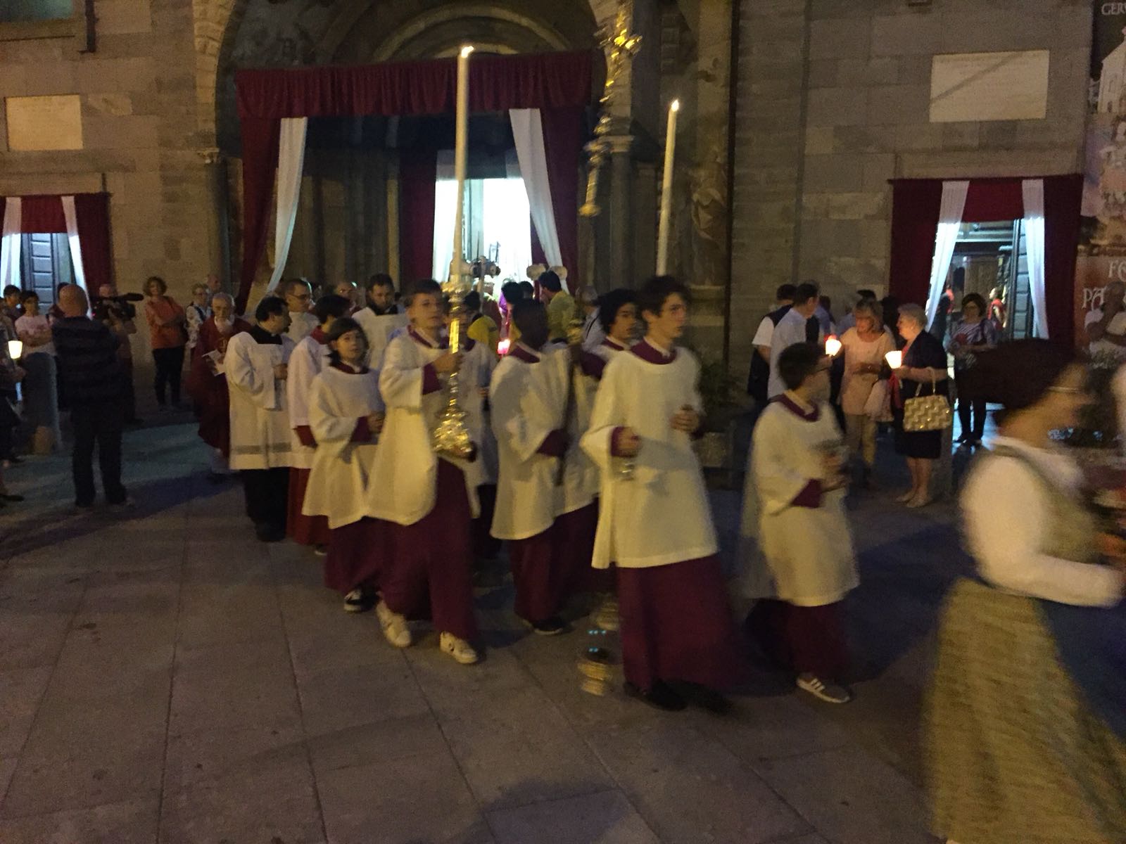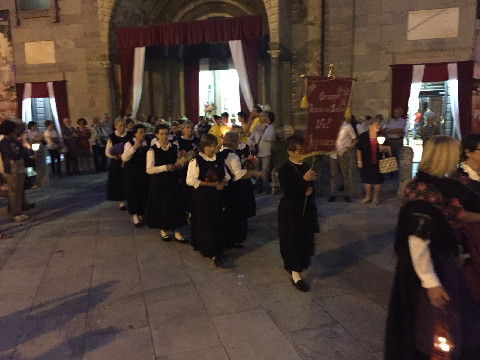che martedì sera hanno partecipato alla tradizionale processione per la festa patronale domese in onore dei santi Gervasio e Protasio. Dopo la Santa Messa officiata dal vicario vescovile ossolano, e parroco di Domo, don Vincenzo Barone, che si è rivolto principalmente ai giovani ed al loro contributo per migliorare la società, è stato fatto uno scambio di doni col sindaco Lucio Pizzi, e sono stati onorati due collaboratori della Parrocchia con una targa. Ai presenti in collegiata è stato distribuito un opuscolo sui due santi Patroni. Poi è partito il lungo corteo con la statua dei Santi, che è stato portato dagli alpini per le vie cittadine. In processione oltre ai numerosissimi fedeli e religiosi anche la confraternita di Santa Marta, la banda cittadina, i gruppi folk, il sindaco Lucio Pizzi con diversi componenti della giunta, e le autorità militari locali. Variato il percorso della processione nelle vie domesi rispetto agli anni scorsi, quando si terminava in piazza Stazione, con la novità della benedizione alla città impartita dal parroco don Vincenzo Barone sotto il cedro di piazza Chiossi.