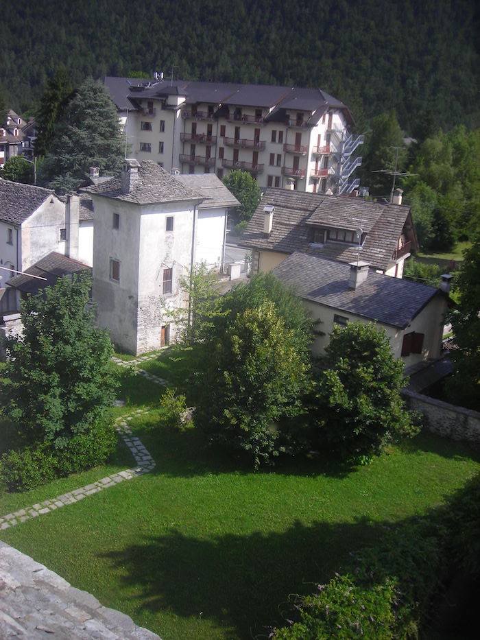 le visite guidate alla Torre di Casa Simonis a Santa Maria Maggiore. Dopo l'appuntamento di sabato scorso, sabato 21 luglio sarà ancora il Fondo Ambiente Italiano ad organizzarle, con ingresso ad offerta libera e possibilità di iscriversi all'associazione. A guidare i gruppi di visitatori sarà il proprietario dello storico edificio; l'architetto Giovanni Simonis, che ha trasformato la torre medievale in un percorso espositivo lungo tutta la storia della "dimora" nella valle Vigezzo. Un percorso fatto di 141 disegni, tutti dello stesso Simonis, che rappresentano un centinaio di edifici di pregio della valle. Le virgolette alla parola dimora non sono una svista; con questo termine si designa normalmente un singolo edificio, adibito ad abitazione fissa di una persona o di una famiglia. Simonis, riferendosi a quella tradizionale vigezzina, la descrive così: « ... non è una casa ma il sistema che fornisce le risorse necessarie alla vita della famiglia.» Cosa ciò significhi si capisce dalle illustrazioni del percorso espositivo; non si trattava di un singolo edificio ma di un sistema di costruzioni distribuite su due o addirittura tre altitudini diverse. Radunate nei villaggi del fondovalle si collocavano le residenze invernali delle famiglie, anch'esse normalmente strutturate in più edifici: la casa di abitazione ed almeno una costruzione accanto, chiamata casa rustica, dove ospitare animali, fieno, attrezzi ed eseguire lavorazioni di prodotti agroalimentari, come noci, castagne, verdure. A quote non molto alte si costruivano le dimore estive delle medesime famiglie, più spartane, adatte a soggiorni temporanei, anch'esse formate da edifici abitativi e ricoveri per gli animali, il fieno, i prodotti agricoli, lì sistemati durante le mezze stagioni e portati nei villaggi invernali man mano che occorrevano. Infine gli alpeggi, a quote comprese tra i 1400 e i 2000 metri, sopra il limite dei boschi; erano gestiti spesso in comune tra le famiglie, che vi mandavano in estate persone specializzate nella lavorazione del latte e dei latticini, spartendosi poi i prodotti. Le visite guidate rivelano particolari interessanti anche a proposito della Torre di casa Simonis, in origine Torre De Rubeis; edificio trecentesco integrato e modificato fra il 1500 e il 1700, non aveva alcuna funzione militare, né di avvistamento, ma solo di affermazione del prestigio e del potere della famiglia proprietaria. Quello che oggi chiameremmo uno status symbol, affiancato in seguito dall'edificio della Pretura, è parte di un complesso edilizio medievale comprendente un ampio recinto, protetto da una torretta più piccola, doverano ricoverati le merci in transito fra Canton Ticino e Valdossola gli animali da soma e i cavalli. In seguito l'ampio cortile ha assunto anche la funzione di luogo di addestramento della milizia locale vigezzina. Oggi il complesso è frazionato in diverse proprietà. La torre principale fu restaurata nel 2014: emersero solo allora i danni subiti durante le scorrerie degli Svizzeri, che nel 1487 incendiarono la Pretura. La torre è rimasta in piedi per più di 500 anni, pur con le strutture del tetto indebolite dalle fiamme.