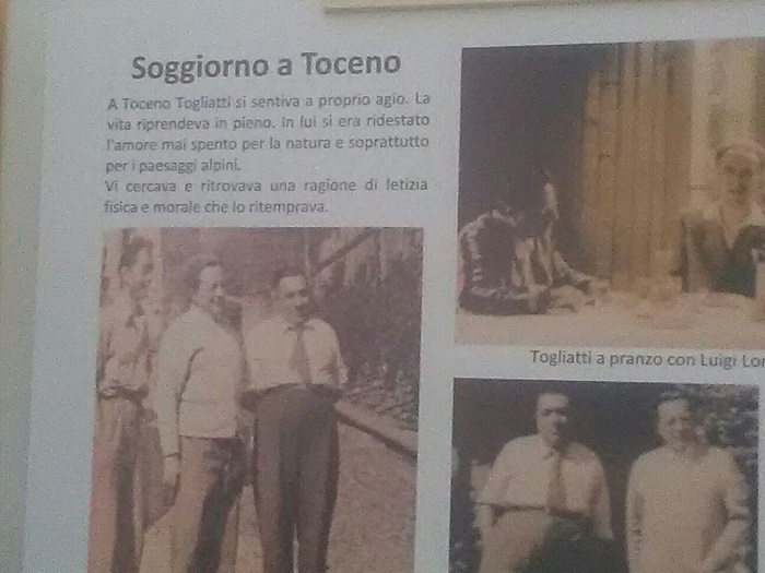 TOCENO- 30-07-2018- Toceno al centro della storia italiana. Un episodio poco conosciuto, se non da alcuni valligiani e da chi ha letto le ricostruzioni di Benito Mazzi, ieri è stato celebrato nel piccolo borgo vigezzino: proprio qui nel 1948 Palmiro Togliatti, convalescente dopo l'attentato di via della Missione a Roma, recuperò le forze nel più assoluto anonimato, soggiornando per due settimane nell'albergo Miravalle. Il politico comunista scelse Toceno dopo aver cercato la necessaria calma e tranquillità ad Orta, ove invece fu assillato dai giornalisti. Alla presenza delle autorità e con la benedizione di don Paolo Montagnini è stata scoperta la targa commemorativa affissa sulla parete dell'edificio che al tempo aveva ospitato l'albergo. Erano presenti i sindaci della Valle, di qualsiasi colore politico, l'assessore alla cultura della regione Piemonte Giovanna Pentenero, Anna Maria Ubezio, figlia dei gestori del Miravalle. La giornata è proseguita con l'apertura della mostra documentaria presso la sala parrocchiale di Toceno e si è conclusa con la proiezione del cortometraggio " Via della Missione" regia di Mattia Fazzari e soggetto di Maria Agostina Pellegatta. La parte scientifica della rassegna è stata curata dalla stessa già senatrice Maria Agostina Pellegatta ed Elio Giacometti. La presentazione della mostra è stata introdotta da Cristina Caretti, membro dell'associazione culturale biblioteca di Toceno e ha visto la collaborazione di Pasquale De Lucia e Mario Bassi che hanno curato la ricostruzione storica. La mostra " Convalescenza a Toceno dopo l'attentato del 14 luglio 1948" resterà aperta fino al 19 agosto.
