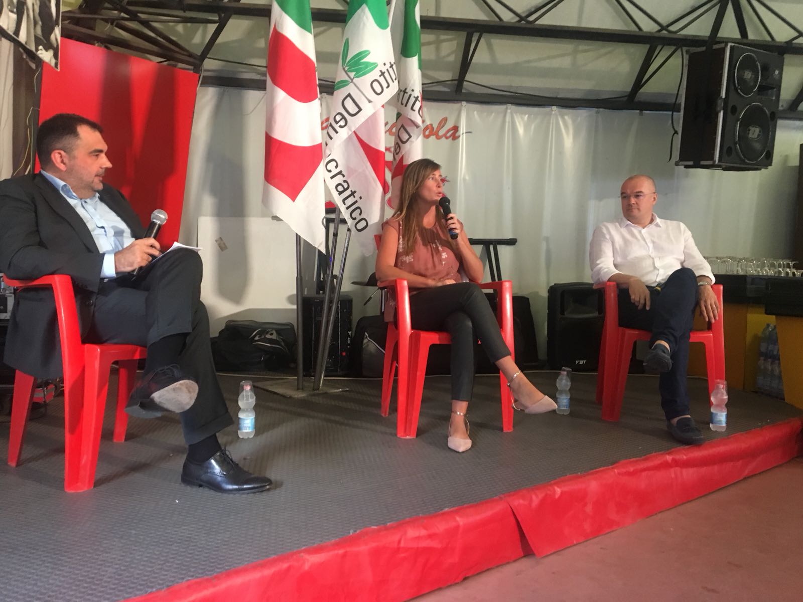 VILLADOSSOLA- 11-08-2018- “Un grande grazie agli amici e amiche della festa de L’Unità della Lucciola in Valdossola. E' stato un bel dibattito a tutto tondo con Enrico Borghi. Adesso una breve pausa e a settembre si riparte con le feste de L’Unità in giro per l’Italia”. Così l'ex ministra Maria Elena Boschi ha commentato la sua partecipazione ad un dibattito venerdì, durante la Festa dell’Unità alla Lucciola di Villadossola, insieme all'onorevoel ossolano Enrico Borghi. “Maria Elena Boschi ieri sera alla Festa dell’Unità di Villadossola ha dato prova di leadership e di sintonia con il nostro popolo- così Borghi- anche i passaggi che, giornalisticamente, si potrebbero definire ostici (dal suo annuncio in passato di ritiro al rifiuto di alleanze con i 5 Stelle, dalla necessità di fare un congresso vero e subito alla scelta di non ripiegare nella ridotta delle alleanze con l’estrema sinistra che ha contributo alla sconfitta del 4 marzo) sono stati salutati da scroscianti applausi delle numerose persone presenti. L’autunno vedrà cadere la finzione di un “governo di cambiamento” e il Pd dovrà trovarsi pronto per la costruzione dell’alternativa al sovranismo. Dall’Ossola il messaggio è arrivato chiaro, e il nostro popolo ha dimostrato di essere più avanti di un dibattito interno talora asfittico, e di volere determinazione, unità e voglia di futuro. Le caratteristiche ben sintetizzate dall’importante contributo di Maria Elena ieri sera a Villadossola”. Tanta la gente presente ad ascoltare il dibattito, svoltosi dopo che la ministra ha salutato i volontari, specie i tanti giovani, della festa. Poi, moderati dal responsabile della redazione di Verbania de La Stampa Ivan Fossati hanno parlato ai presenti, rispondendo alle domande che hanno toccato i temi più attuali, Tav, vaccini, Ilva, il populismo e le fake news.