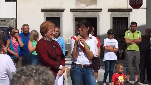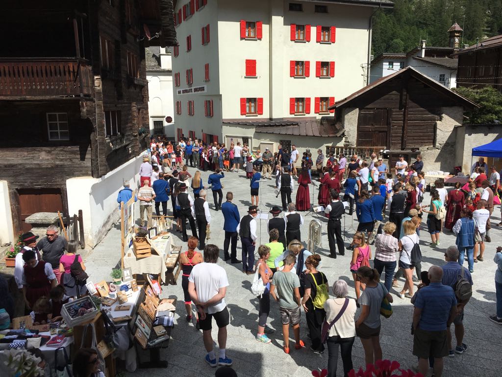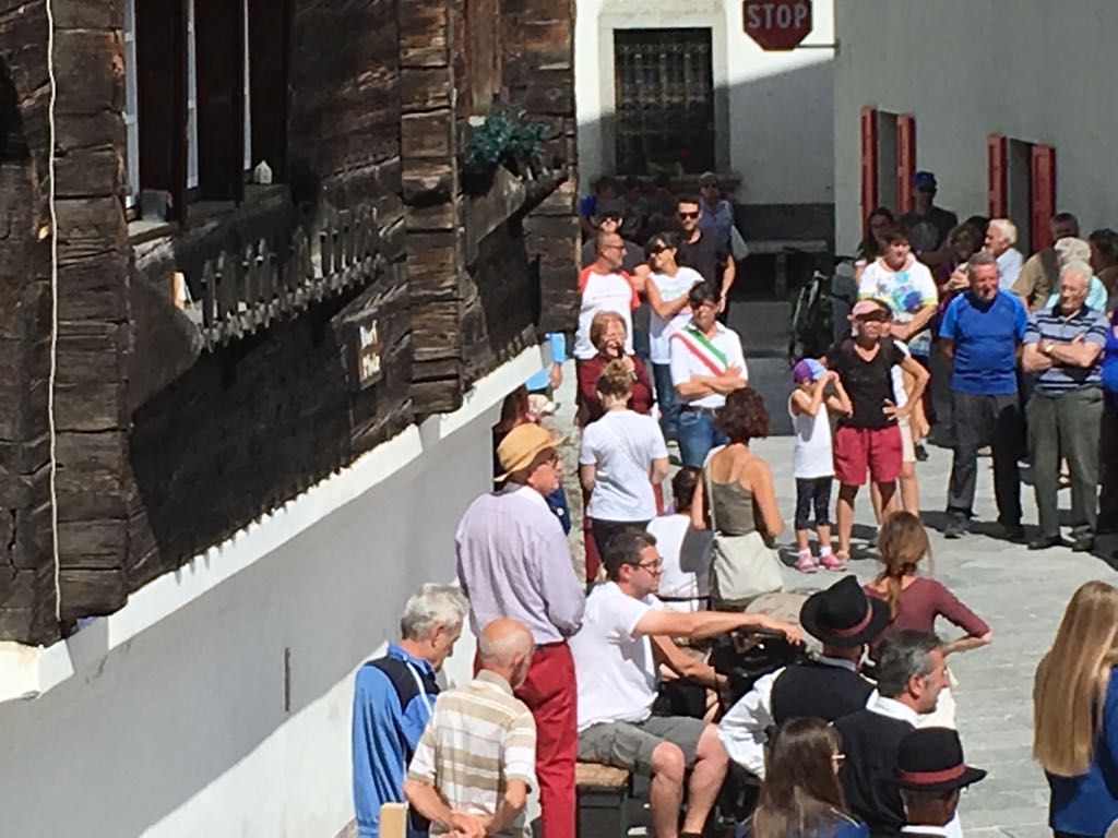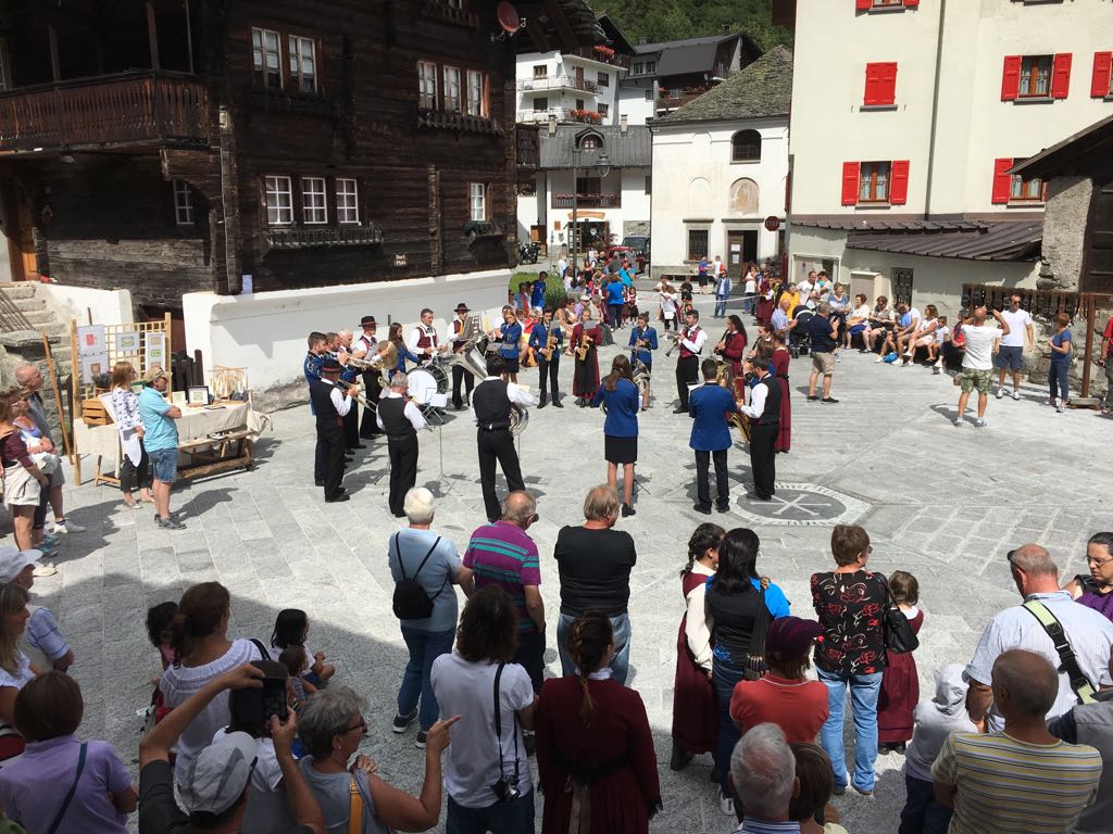 FORMAZZA-11-08-2018- Celebrato il “pomeriggio delle tradizioni” a Formazza con l'inaugurazione a Ponte della “Dorf Platz”. Alle 15 il taglio del nastro, il saluto del sindaco Bruna papa e la spiegazione del simbolo posto al centro della piazza, che è stato tratto da un segno di casato di una anonima famiglia formazzina: più precisamente da una Tessera degli "Hobteller" (diritti d'alpe) di Valtoggia Bassa all'inizio dell'800.