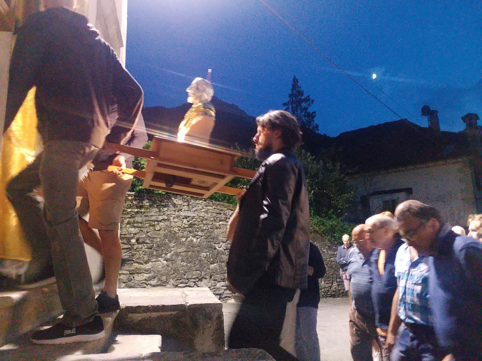 La chiesetta del borgo, a lui dedicata, ieri sera, sabato 18 agosto, ha aperto le sue porte per accogliere la processione del Santo e la benedizione eucaristica dei fedeli fatta da don Paolo Mantagnini, il prete di Druogno e frazioni.