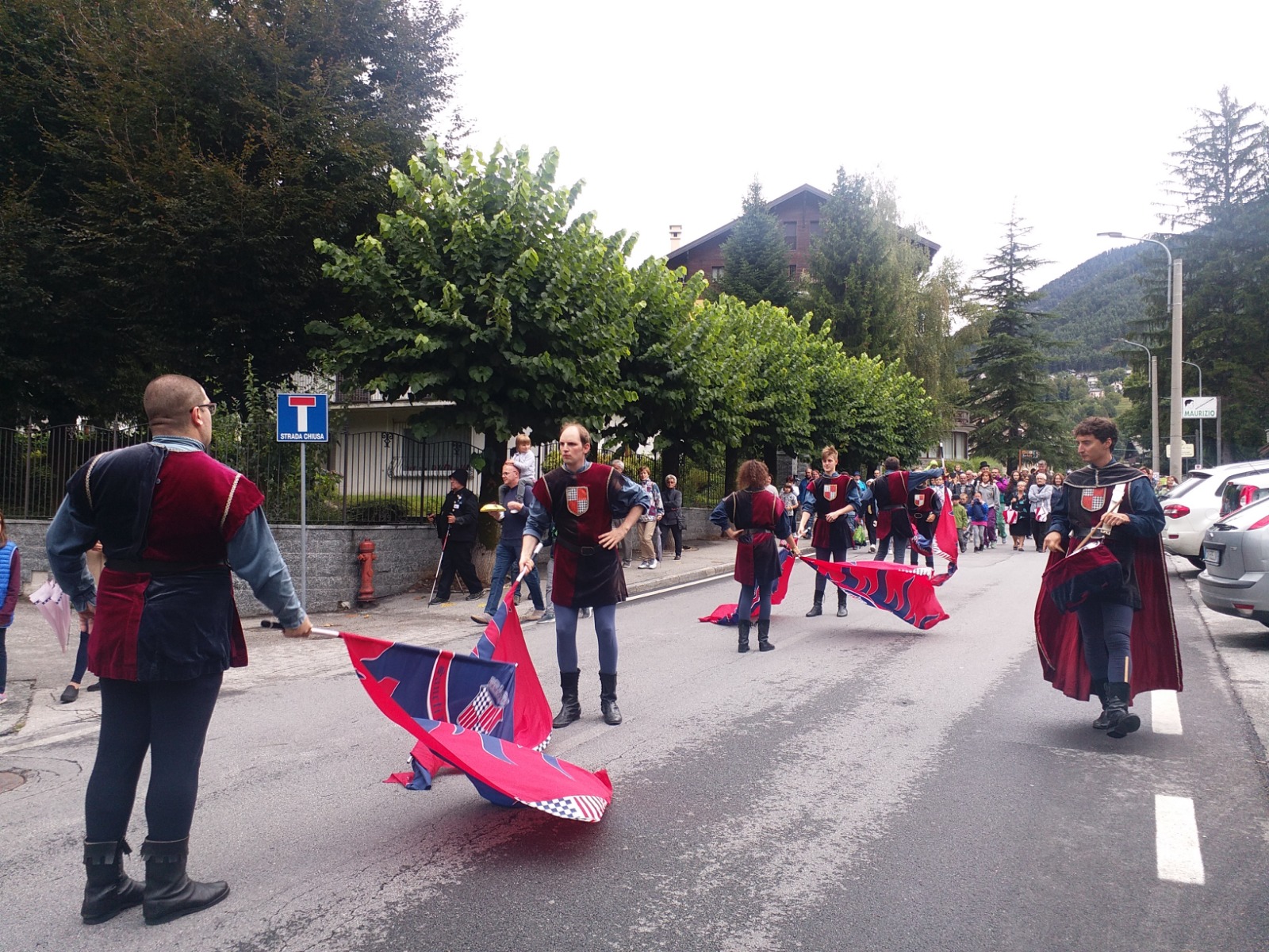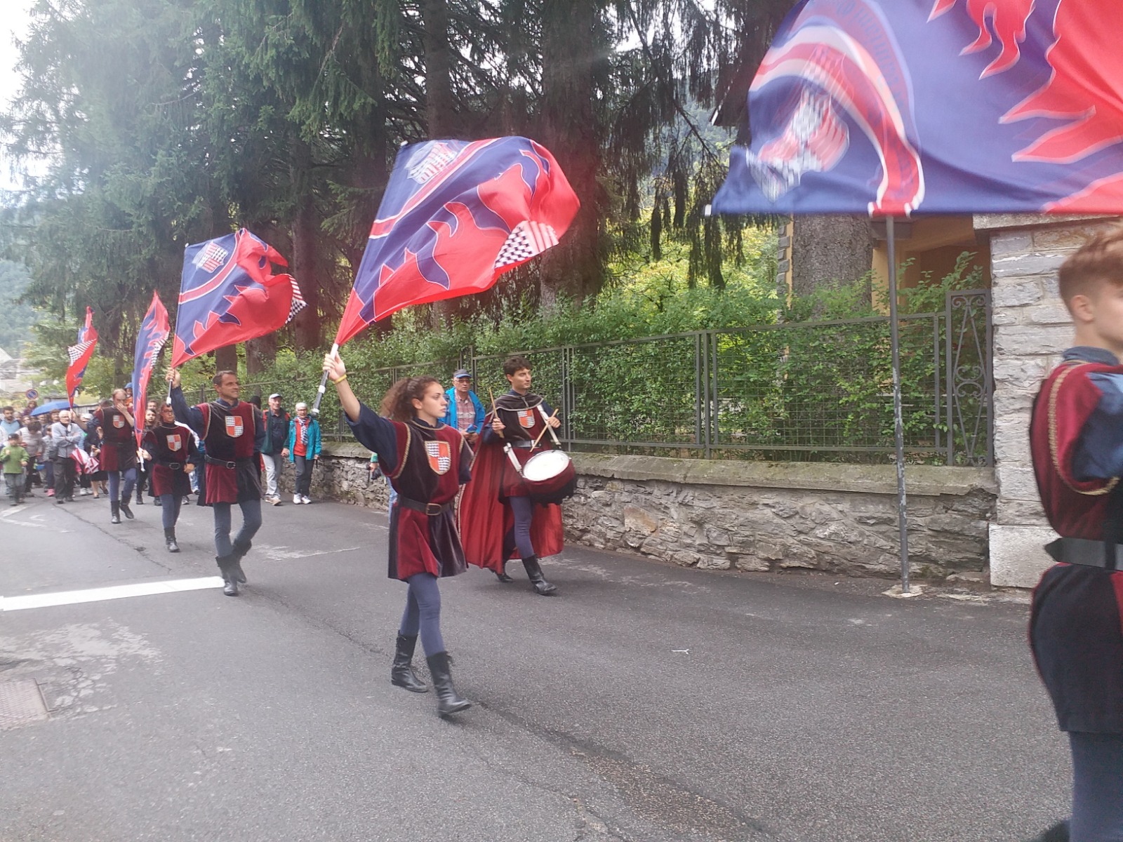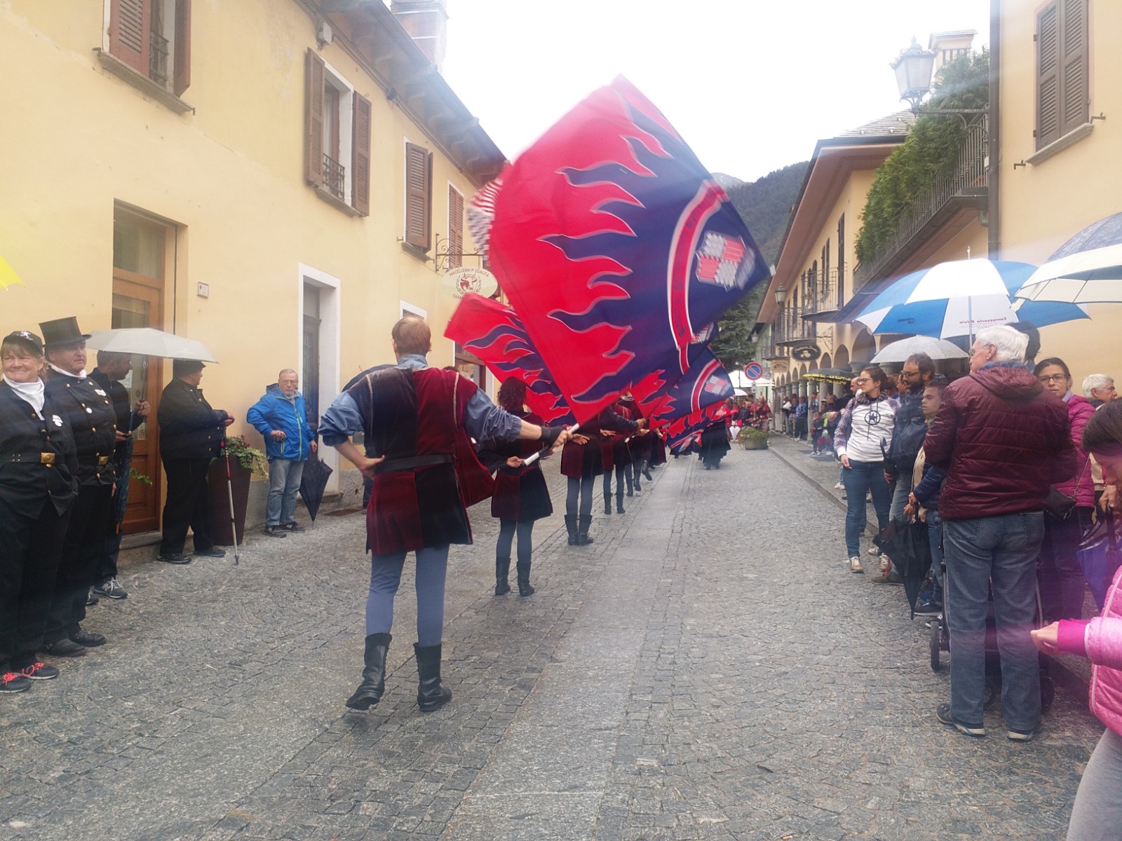 SANTA MARIA MAGGIORE - 01-09-2018 - Un'esibizione che è piaciuta a grandi e piccini quella degli sbandieratori di San Damiano d'Asti. Nel pomeriggio di sabato 1 settembre, in occasione del raduno internazionale degli spazzacamini, il gruppo folkloristico astigiano si è esibito in una parata, durata oltre un'ora, per le vie del centro di Santa Maria. Al suo seguito c'era tanta gente che è rimasta affascinata dalla destrezza degli sbandieratori, dal suono dei tamburi e dagli abiti rinascimentali. Ad ammirare le evoluzioni c'era anche un "pubblico speciale", ovvero gli spazzacamini accorsi in Valle da ogni parte del mondo. La festa proseguirà questa sera con musica dal vivo e ristoro nel parco di Villa Antonia.