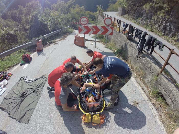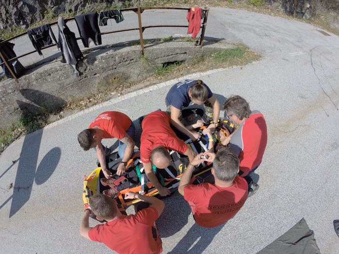 Il giorno successivo, in valle Vigezzo, con l'assistenza di personale medico del CNSAS, il focus si è spostato sulla gestione delle diverse traumatologie e l'utilizzo degli specifici presidi.
