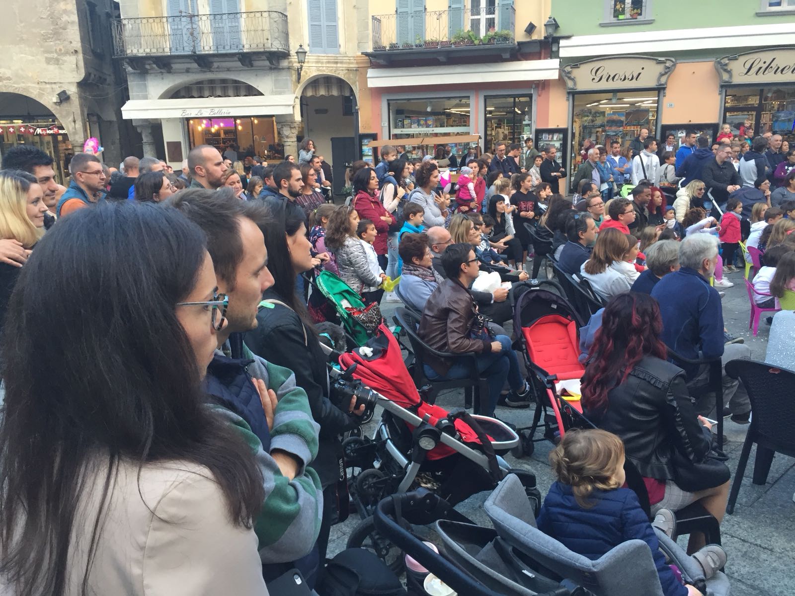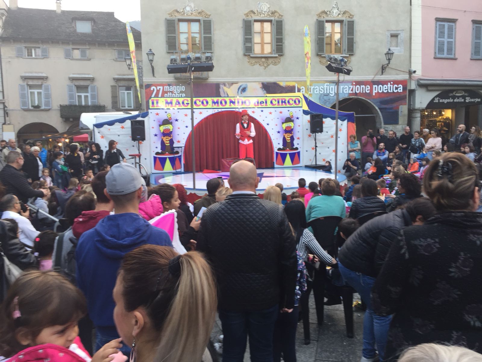 DOMODOSSOLA- 13-10-2018- Si è aperta oggi pomeriggio "BimbinDom" la due giorni di giochi, spettacoli e laboratori dedicata ai bambini e organizzata dal comune di Domodossola. La città si è trasformata, diventando un gioco en plein air per divertire i più piccoli fino a domani sera con show e laboratori gratuiti in piazza Mercato e con tanti giochi gonfiabili nelle altre piazze del centro storico con la formula del ticket giornaliero e giri infiniti ( 15 euro un giorno e 25 euro per due giorni). Il vice sindaco Angelo Tandurella ha espresso soddisfazione per il successo della giornata inaugurale della seconda edizione di "BimbinDom" . Questa sera alle 20.30 in programma un Variety Show: spettacolo di chiusura con gli artisti presenti nel pomeriggio odierno. Domani, domenica 14 ottobre, dalle ore 11 saranno presenti un trampoliere, si svolgeranno laboratori Fluffy Puppets Show, macchina elettrica dei clown, spettacolo bolle di sapone. Alle 12 laboratorio di circo con Geo il giocoliere. Dalle 16 truccatori del viso a cura di "Ops! Teatro" , spettacolo Fluffy Puppets Show, alle 17 spettacolo di magia con Magic Squilibrio e a seguire spettacolo con Geo il giocoliere e infine alle 18 Circus Show con Fortunello, Malerba, Mirtillo e Ranocchio.