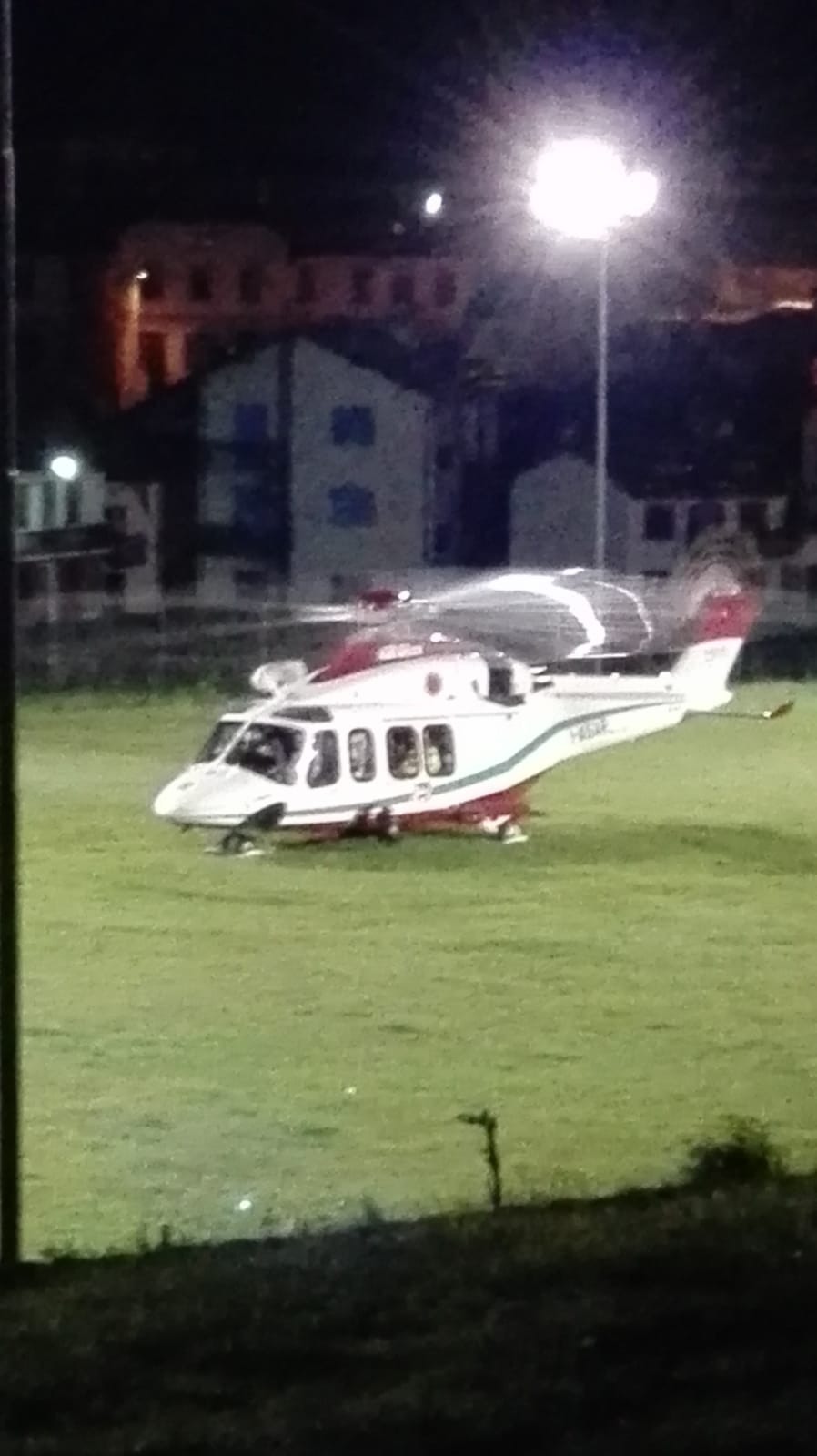 per il primo atterraggio, di prova, dell'elciottero del 118 in notturna. Accolta da autorità e curiosi l'eliambulanza con i sanitari della Croce Rossa è partita da Torino ed è atterrata allo stadio comunale.