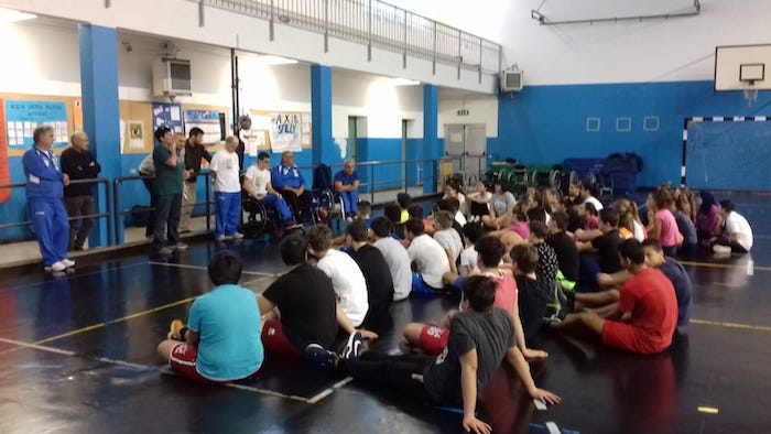 il Gsh Sempione ha incontrato i ragazzi delle terze medie dell'I.C.Bagnolini. L'attività, svolta nella palestra dell'Istituto, ha previsto una breve spiegazione sull'operato dell'associazione sportiva da parte di Lorenzo Saccà, allenatore della squadra di atletica nazionale, e una serie di giochi che hanno coinvolto direttamente i ragazzi. Gli alunni hanno provato infatti a giocare alcune partite di basket usando le sedie a rotelle portate apposta in palestra dai volontari. Hanno così potuto immedesimarsi nelle difficoltà e negli ostacoli delle persone con handicap fisici, ma al contempo hanno conosciuto l'entusiasmo e la vitalità di persone che non si arrendono e che riescono anche a raggiungere importanti obiettivi nello sport. Gli alunni sono stati inoltre sensibilizzati sul tema delle barriere architettoniche. Dalla scuola il grazie all'associazione per l'importante e formativa esperienza che verrà replicata anche nelle sedi di Pieve e Vanzone.