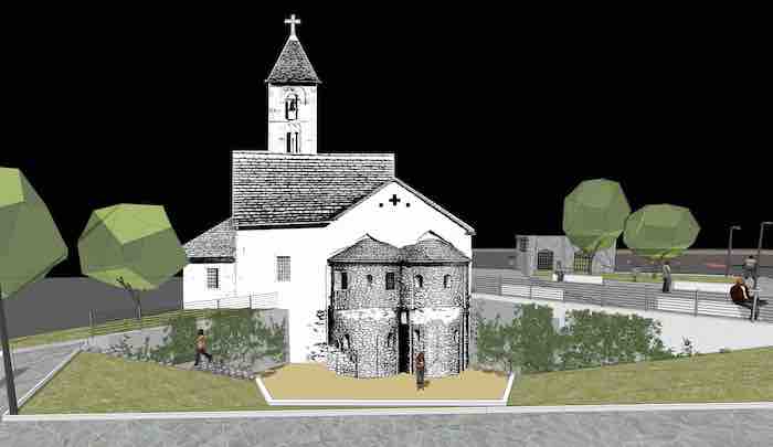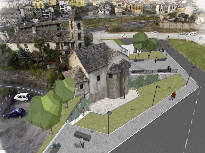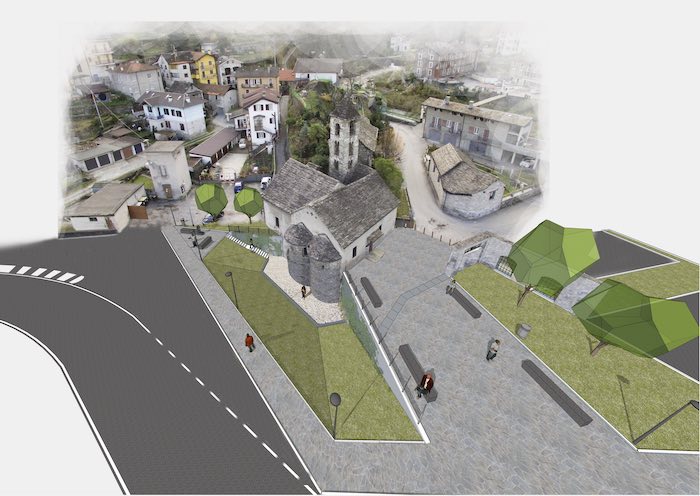 La parola è infine passata ai progettisti: l'ingegner Andrea Bonacci dello studio Ingeoart e l’architetto Francesco Sarazzi hanno descritto gli obiettivi e le soluzioni progettuali attraverso la proiezione di immagini e rendering 3d. In sintesi il progetto prevede la messa in luce delle due absidi del IX secolo della chiesa del Piaggio attraverso la realizzazione di un declivio inerbito, la creazione di una piazza antistante la chiesa con la conservazione a memoria di parte del muro della ex bulloneria. I Questo si rende possibile modificando il percorso di via Paolo Marino, realizzando anche due nuovi piccoli parcheggi. Questi saranno separati dalla chiesa attraverso due aree verdi. Il tutto sarà completato ovviamente da arredo urbano ed illuminazione per rendere fruibile questo nuovo spazio. Questo progetto si configura come la prima parte del più complesso intervento di recupero di tutta l’area ex-Ceretti.
