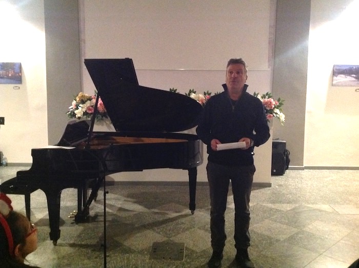 La serata, a ingresso libero, ha visto l'esibizione dei giovani allievi della scuola di musica, che si sono alternati nell'esecuzione di brani classici della tradizione natalizia. Si trattava di Sebastiano Guglielmazzi, Nicoletta Deitinger e Andrea Cherkas al pianoforte, Giulia Bianchetti al violino, Simone Locarni, pianista accompagnatore, Monica Minetti, soprano, Claudio Sereno, tenore, Giulia Scuto al pianoforte, Emma Ferroni e Francesca Bolognesi, al clarinetto, Alessio Novaria, al trombone, Lara Bianchetti, al pianoforte e Giada Cottini alla chitarra.
