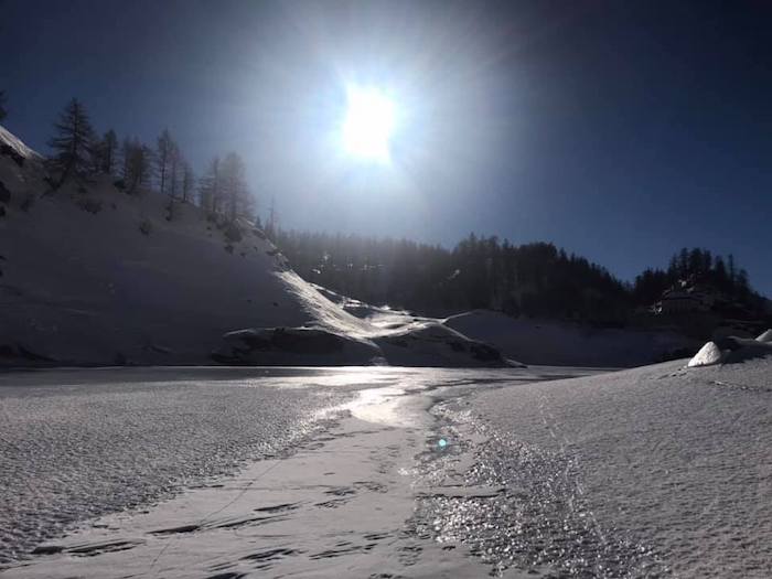 BACENO - 02-12-2019 - Il lago gelato di Codelago s'è ripreso il suo spazio, per l'ammirazione dei tanti escursionisti che in questi giorni di festa si sono recati al Devero. Ma dall'ente di gestione delle Aree Protette dell'Ossola giunge un avviso importante, poiché lo strato di ghiaccio è sottile in molti punti, una condizione anomala per la stagione. "La traversata del lago gelato di Codelago all’alpe Devero è un itinerario molto frequentato che attira ogni inverno escursionisti e ciaspolatori. Quest’anno il lago, essendo in corso interventi di manutenzione delle dighe, è stato svuotato ed è tornato alle dimensioni originarie di inizio Novecento, prima degli interventi di utilizzo idroelettrico. Una condizione straordinaria che permette di vedere il lago come era un secolo fa. Le condizioni ambientali tuttavia sconsigliano fermamente l’attraversamento del lago in quanto le forti escursioni termiche hanno impedito il formarsi di un consistente strato di ghiaccio".