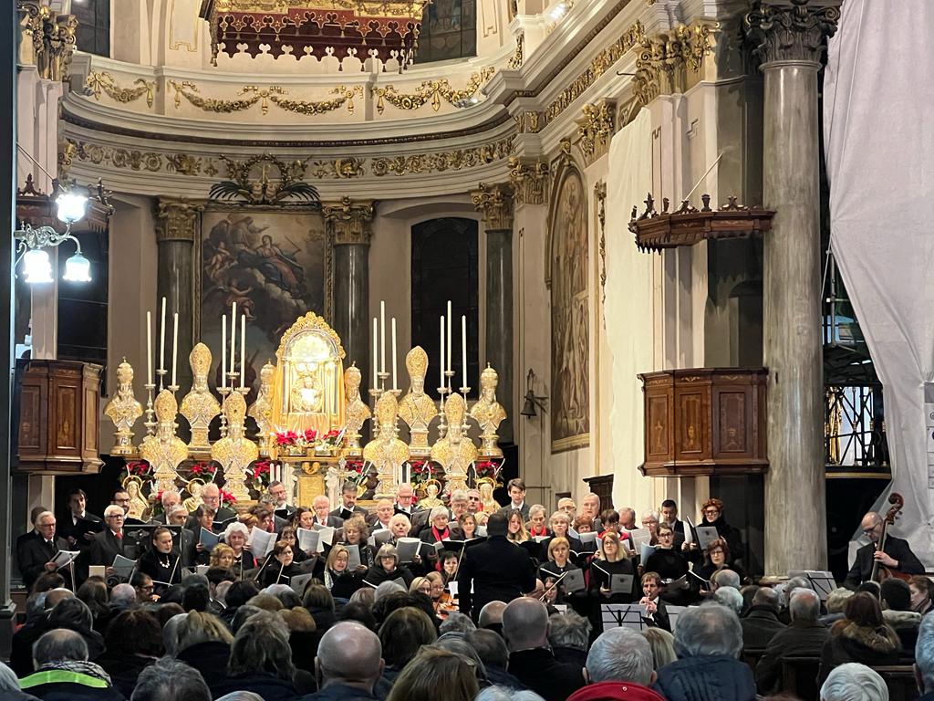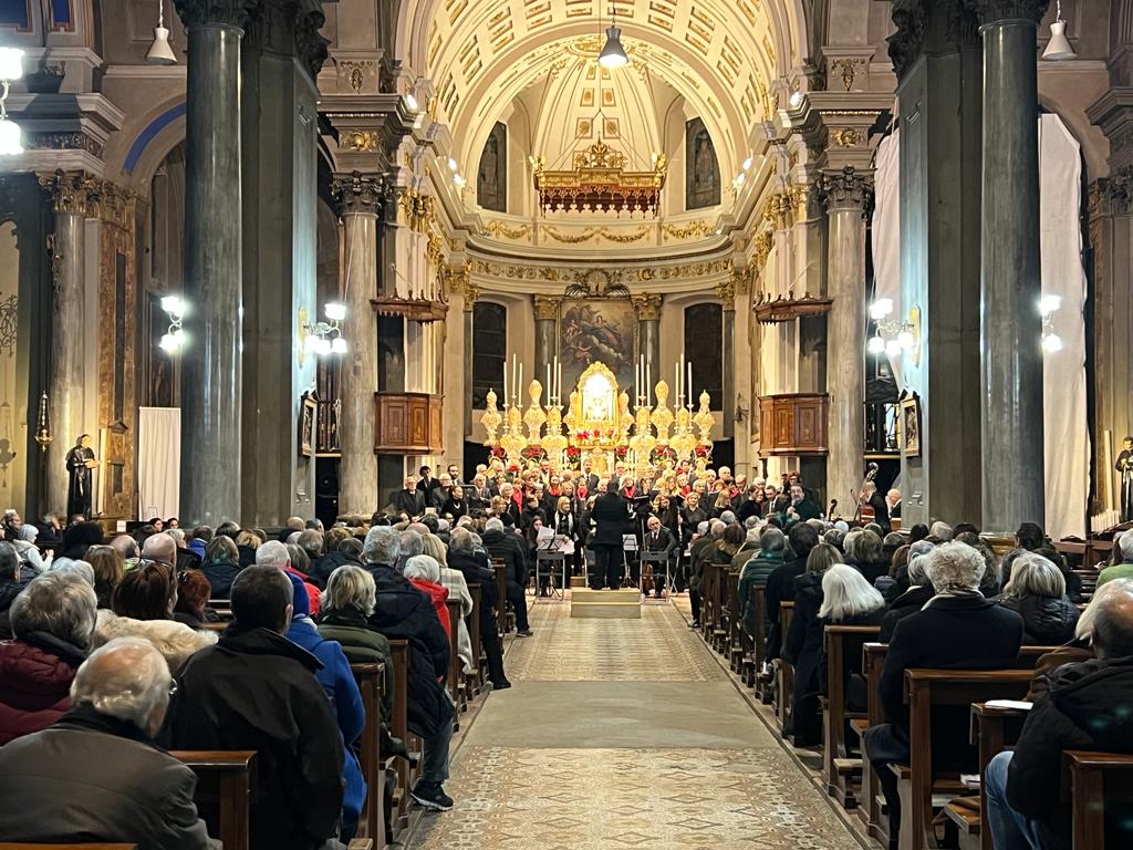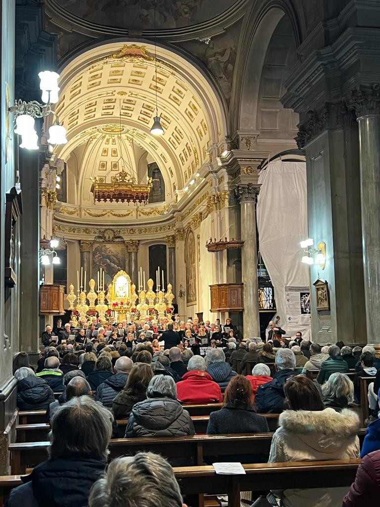 DOMODOSSOLA - 29-12-2023 -- In una Collegiata affollata, la cappella Musicale del Sacro Monte Calvario ha celebrato in concerto le festività. Un appuntamento ormai tradizionale, sempre molto coinvolgente e che quest'anno si è caricato di un ulteriore significato, ricordando i venti anni di attività dell’Orchestra da camera della Cappella Musicale e dando il via ai festeggiamenti per i cinquant’anni della fondazione della Corale di Calice.