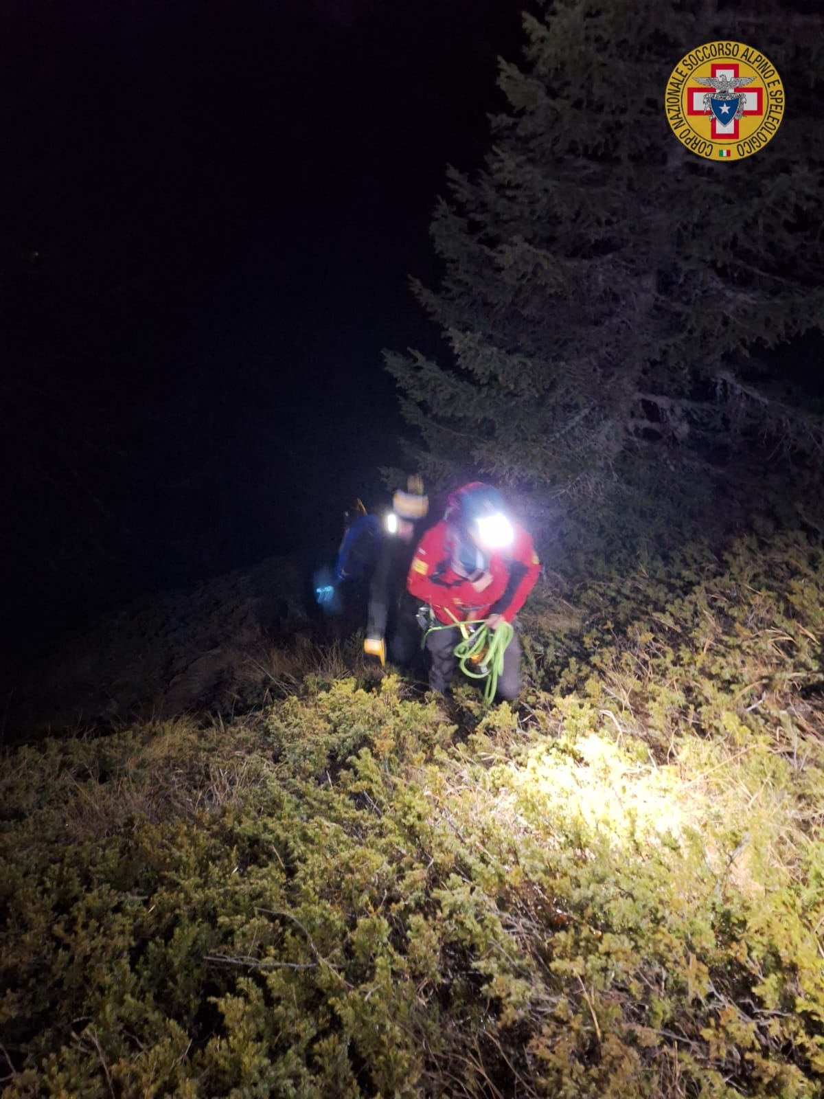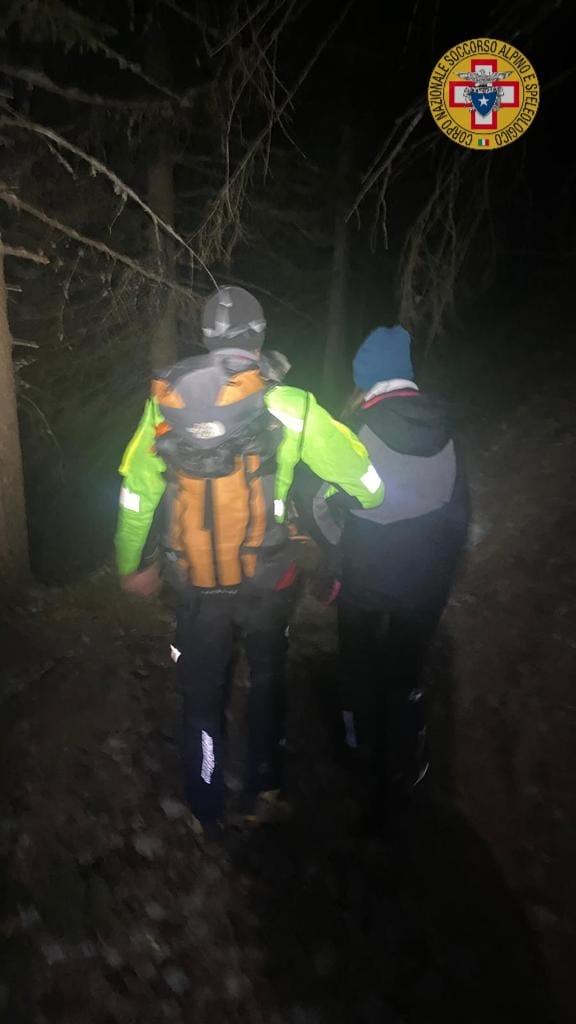 MACUGNAGA - 30-12-2023 -- Si è completata nel cuore della notte, intorno alle ore 2:40 il recupero della famiglia cecoslovacca di 4 persone più il cane, bloccata zona dell'Alpe Cicerwald sopra Borca dal sopraggiungere del buio. I volontari della stazione del soccorso alpino di Macugnaga e del Sagf, li avevano raggiunti già nel corso della tarda serata portando bevande calde e coperte e decidendo in un primo momento, per questioni di sicurezza, di far partire il recupero nella mattinata odierna. Ma la presenza nel gruppo di due adolescenti che avrebbero dovuto trascorrere la notte all'addiaccio, ha fatto propendere per un intervento immediato che s'è protratto per alcune ore nel buio completo. I 4 erano partiti dall'Alpe Cicerwald con l'obiettivo di raggiungere l'Alpe di Garda ma erano rimasti bloccati su una cengia da dove avevano allertato i soccorsi.