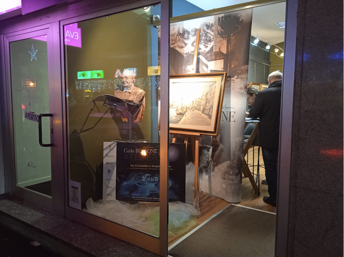 DOMODOSSOLA 31-12-2023 -- Inaugurata a Domodossola presso l’Atelier Carlo Bossone , la mostra aQua dove sono esposte 23 opere del Pittore anzaschino , che hanno quale comune denominatore l’importante risorsa naturale in tutte le sue condizioni; dal ghiaccio alla neve ai fiumi , ruscelli , stagni , ai laghi alpini , sino a laghi e mari .