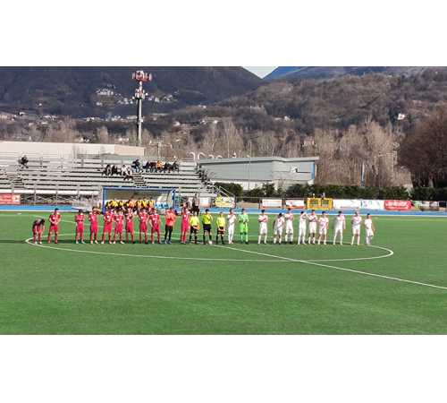 DOMODOSSOLA- 11-02-2024-- Allo stadio Curotti la Juve Domo affronta il Fulgor Valdengo, i granata vanno sotto al 14° con un tiro dalla distanza: Bleve respinge e sulla respinta Coppo e il più lesto e infila il vantaggio.