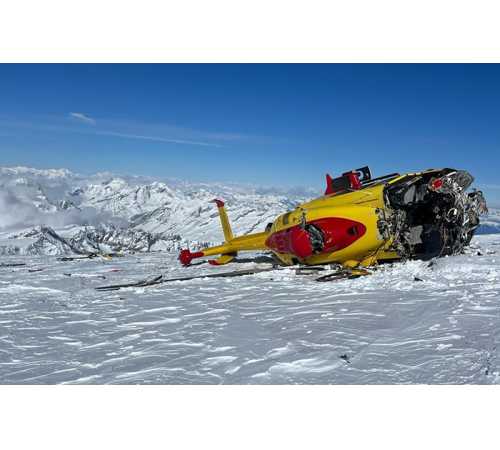 MONTE ROSA- 16-03-2024-- Tutte le 4 persone a bordo (pilota, tecnico del Soccorso Alpino, tecnico di volo e cinofilo) dell'elicottero del 118 precipitato sul MOnte Rosa sono in buone condizioni e stanno per essere trasferite in codice verde all’Ospedale di Borgosesia per i necessari accertamenti.