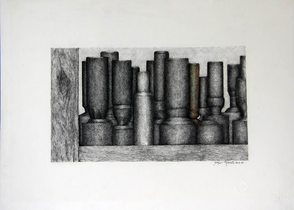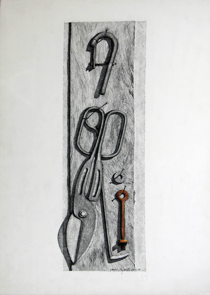 Sono in esposizione 35 opere a china di Giorgio Stefanetta, impreziosite da qualche tocco di pastello, che ritraggono dettagli di macchinari: ingranaggi, bulloni, pulegge, bilancieri, caviglie, chiavarde e altre attrezzature provenienti dalla storica “Bolloneria A. Morino & C.” di Vogogna. Questa fabbrica, purtroppo chiusa da alcuni anni, è stata per tutto il secolo scorso la realtà economica e trainante non solo per uno dei più incantevoli borghi d’Italia, ma anche per l’Ossola.