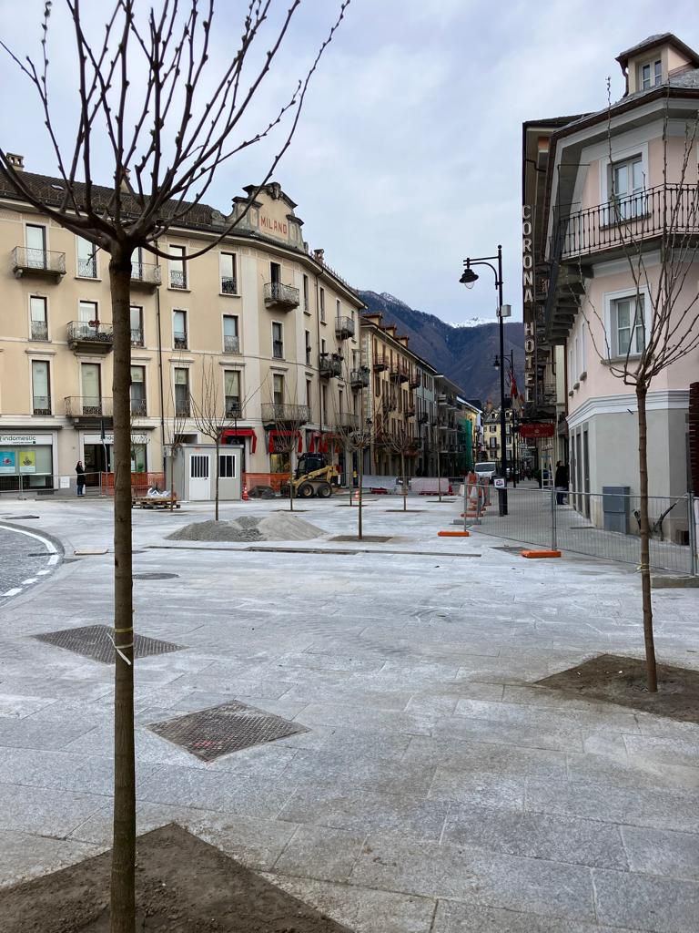 DOMDOSSOLA - 26-3-2023 -- Verso la conclusione gli ultimi lavori nel centro domese, quelli che, partiti nel febbraio del 2023, hanno interessato via Marconi, via Binda e piazza Cavour. Grazie all'ottimo lavoro della ditta Dremar, i cui dipendenti hanno lavorato con precisione, velocità e con ogni tempo, le opere si concluderanno nei tempi previsti. In questo momento si pensa ai dettagli. La settimana scorsa sono stati piantumati gli alberi, cosa che comincia a conferire carattere ai luoghi; agli ampi marciapiedi, alla piazza, ai palazzi storici che, grazie agli interventi e alla ztl risultano maggiormente valorizzati.