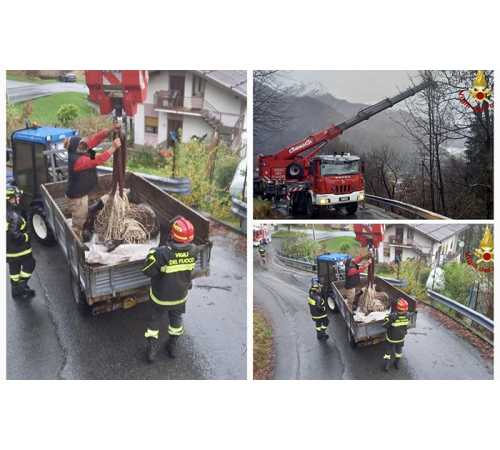 10-04-2024-- Un' asina gravida è caduta nel greto di un torrente. L'episodio oggi nel comune di Bannio Anzino, in località Parcineto. Due squadre di vigili del fuoco, una dalla sede centrale di Verbania con il supporto dell'autogrù e una del distaccamento volontari di Villadossola, sono intervenute per salvare l' asina.