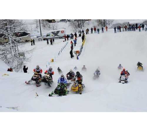 FORMAZZA- 12-04-2024-- Rombano i motori alla cascata del Toce nel fine settimana per la quarta e quinta prova del campionato italiano motoslitte e per la prova del Central Europe snowcross trophy.