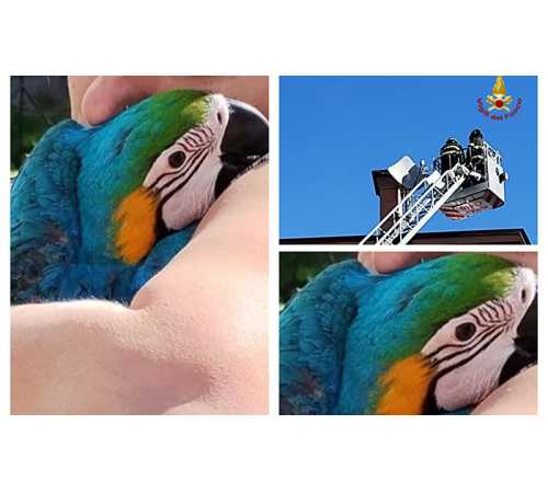 Il pappagallo, che di norma non è abituato ad uscire, si è fatto avvicinare dai vigili del fuoco posizionati sul cestello dell'autoscala che lo hanno recuperato e riconsegnato al proprietario in buona salute.