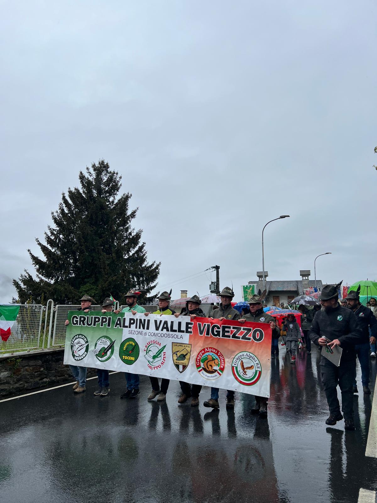 CRAVEGGIA - 29-4-2024 -- Nella piovosa domenica di fine aprile, gli Alpini della Valle Vigezzzo hanno celebrato a Craveggia il loro decimo raduno. Annullata la sfilata per le complicanze meteorologiche, la manifestazione, con la presenza delle autorità, dei bambini del paese e della Fanfara alpina ossolana non è mancata di rendere l'omaggio floreale ai Caduti, cui ha fatto seguito la messa. Infine, tutti al Centro del Fondo di Santa Maria per un allegro pranzo in compagnia.
