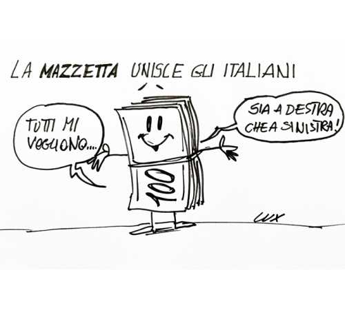 PIEMONTE - 12-05-2024-- L'italico vizietto, comune ad ogni parte politica secondo l'affilata matita di Carlo Lux, nella nuova vignetta dell'architetto domese.