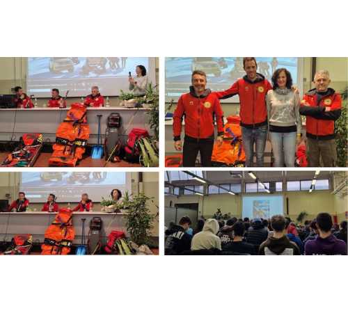DOMODOSSOLA - 23-5-2024 -- Il Soccorso Alpino domese ha organizzato questa mattina un incontro nell’aula magna dell’istituto Marconi Galletti Einaudi. In cattedra, Paolo Rigoni, capo Soccorso Alpino della stazione di Domodossola, il viceresponsabile della stazione di Domodossola Giorgio Vescio, Walter Cappai che rappresenta la parte cinofila del Soccorso Alpino domese e Francesca Iossi, insegnante di scienze motorie al liceo sportivo al Marconi Galletti Einaudi e campionessa di bob. Circa 200 alunni del Marconi Galletti Einaudi hanno partecipato all’incontro. Dal 2018 a oggi sono aumentati gli interventi del Soccorso Alpino e così, giornate come questa, servono per fare prevenzione. «Abbiamo visto negli ultimi anni l’evolversi degli incidenti in montagna e abbiamo pensato fosse interessante spiegare ai ragazzi cos’è e cosa fa il Soccorso Alpino. Ringraziamo il Marconi Galletti Einaudi che ci ha accolti. Speriamo diventi un appuntamento annuale» spiega Rigoni. «L’idea è di sensibilizzare i ragazzi, sarebbe bello ripetere questo incontro nei prossimi anni per poter aver sempre più giovani pronti ad andare in sicurezza sulle nostre montagne» spiega Francesca Iossi. «Chissà se, dopo questo incontro qualche ragazzo avrà voglia di entrare a far parte del nostro corpo» auspica infine, Paolo Rigoni.