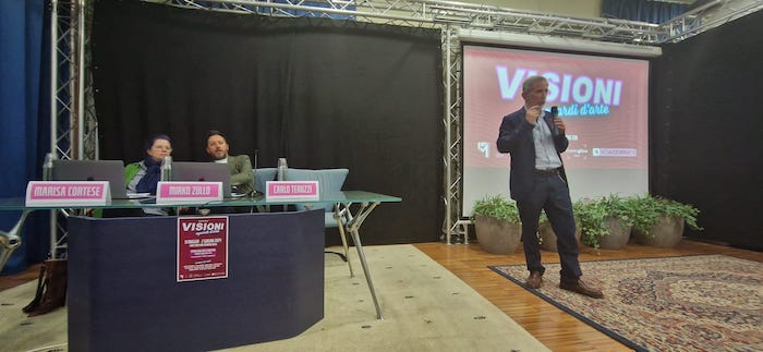 DOMDOSSOLA - 1-6-2024 -- Ieri sera, il fArti Museum, in collaborazione con Fondazione Dignitatis Personae, Rosmini International Campus, Chapeau Films Italy, VCO Azzurra TV e con il sostegno di Fondazione Comunitaria del VCO Ente Filantropico, ha inaugurato alla Villa del Buon Pastore,in via Canuto 12 a Domodossola, la mostra “Visioni – Sguardi d’Arte”. In esposizione, fino al 2 giugno le opere d’arte contemporanea di undici artisti. La mostra è visitabile con ingresso libero sabato 1° e domenica 2 giugno dalle 15 alle 18. Gli artisti che espongono le proprie creazioni, con la supervisione artistica di Marisa Cortese, sono: Gianpiero Bonfantini, Carla Chiaberta, Marisa Cortese, Massimo Falsaci, Sofia Maltempi, Emanuela Mezzadri, Mauro Ramoni, Giorgio Rava, Barbara Richards, Alessia Zucchi, Michele Scaciga. La mostra rappresenta la conclusione del progetto “Visioni. L’arte che comunica l’arte”, settimanale televisivo andato in onda su Azzurra TV dedicato al mondo dell’arte e della cultura, realizzato da Fondazione Dignitatis Personae anche grazie al sostegno di Fondazione Comunitaria del VCO Ente Filantropico. Gli undici artisti che propongono le proprie opere nella mostra collettiva hanno partecipato alla prima stagione del format TV. Nel progetto, a cura del rettore del Rosmini International Campus, Carlo Teruzzi, e del prof. Mirko Zullo, sono stati coinvolti anche gli studenti del Liceo Artistico dell’istituto domese.